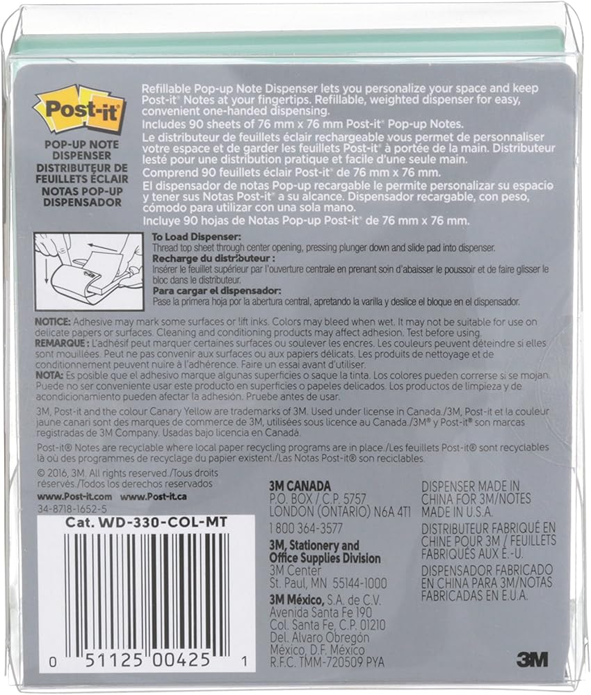 Post-it Pop-up Note Dispenser, Mint, 3x3 in, Pack includes dispenser and a 45-Sheet Pad of Pop-up Notes (WD-330-COL-MT)