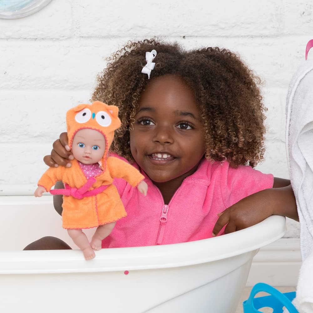Most little ones love taking a bath; it's the most fun and relaxing part of their day. But for other toddlers, bath time is not as appealing, which can cause unnecessary stress for kids and parents. This dilemma is what inspired our BathTime collection, and our goal is to make bath-time stress a thing of the past.Adora's 8.5-inch BathTime tot baby dolls are a bit smaller than our other BathTime babies, making them easy to hold while snuggling, bathing, or chasing other littles. And since they're perfectly sized for on-the-go fun, they make the best pool toy or baby bath toys, guaranteed to make tub-time more enjoyable and encourage a relaxed and playful environment. Each BathTime tot also comes with doll accessories and clothes for added value, plus these dolls double as an adorable pool toy for daytime water play! So, whether they bring their new BathTime tot to the bathtub, Grandma's house, or the grocery store, one thing's for sure- This doll is bound to become their new BFF.