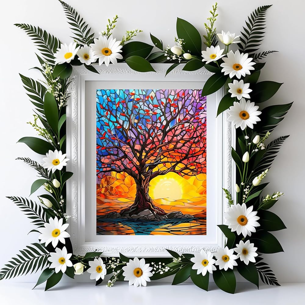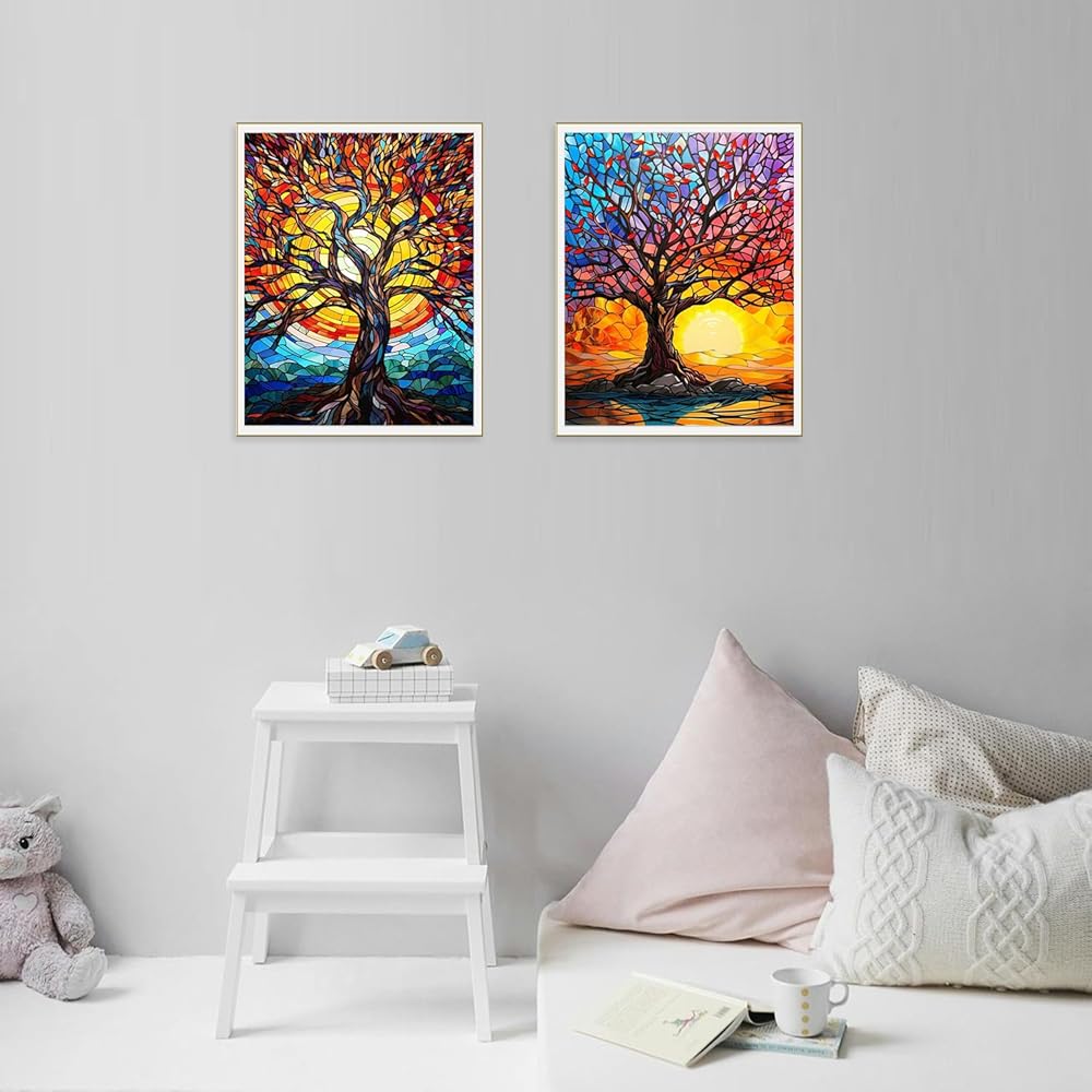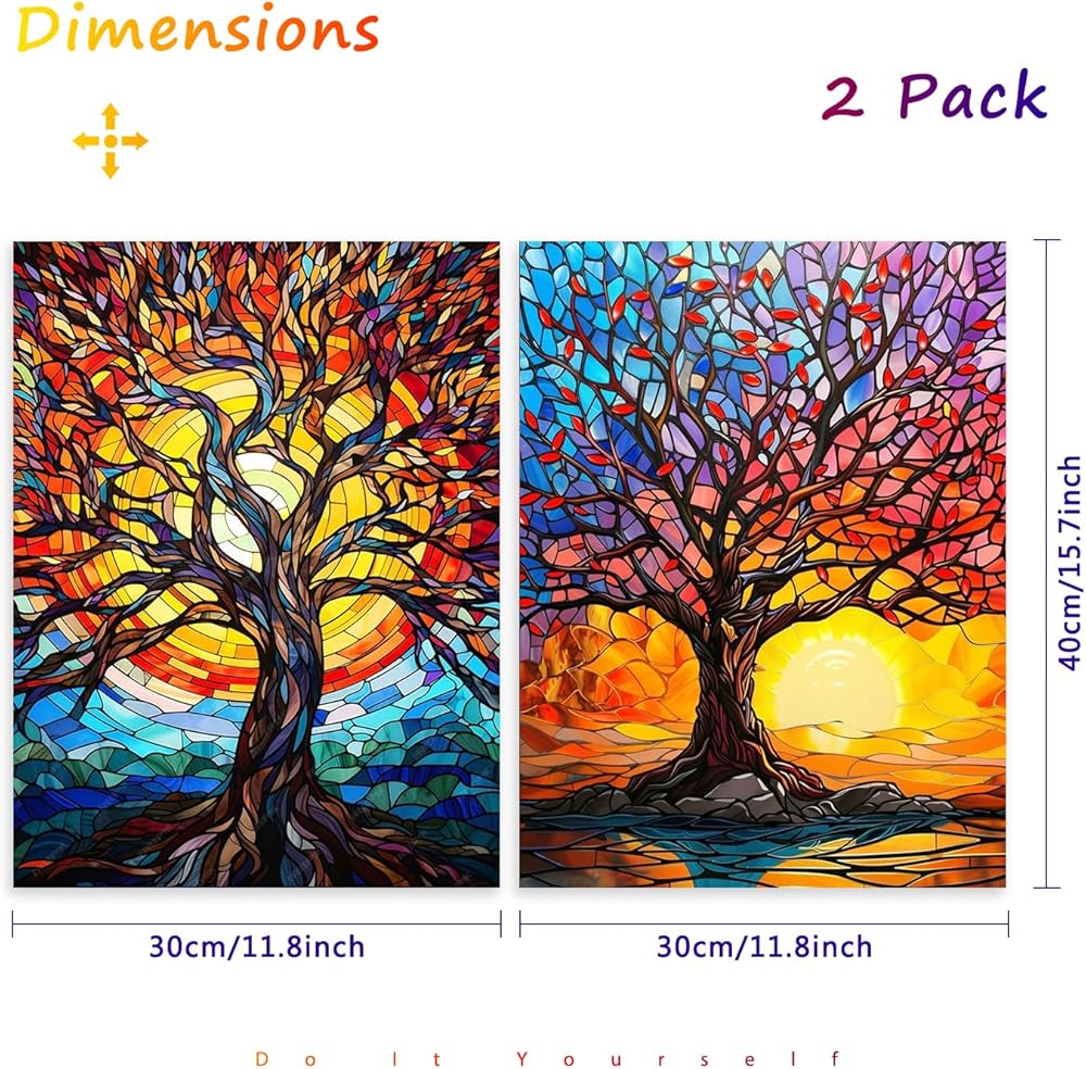 2 عبوة ملونة من الأشجار الزجاجية الطلاء بأرقام على قماش مدفوف ، أشجار الطلاء الزيت الحياة من قبل أدوات الأرقام للبالغين المبتدئين في مربع ملون ، مجموعات فنون مائية للهدايا لعطلة هدايا 12x16 بوصة.
