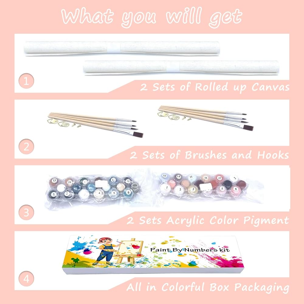 • فعالة من حيث التكلفة: هذه المجموعة عبارة عن مجموعة من قطعتين ، يمكنك الحصول على لوحتين زيتيين في عملية شراء واحدة ، مقارنةً بالوحات الزيتية في المجموعة الواحدة ، وتجربة عالية التكلفة فعالة من حيث التكلفة والحصول على فرحة الرسم في نفس الوقت.