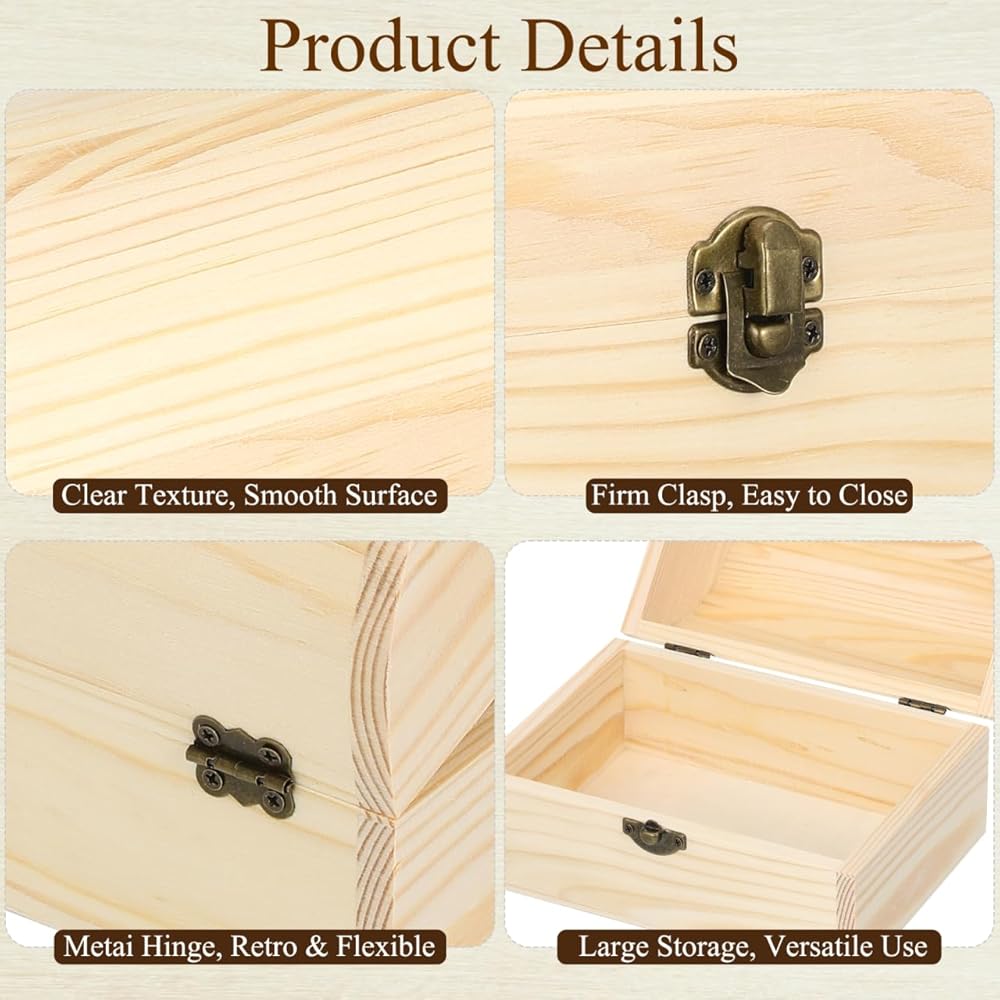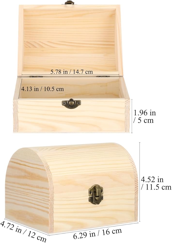 Unfinished Wooden Treasure Chest Box Wooden DIY Storage Box Blank Decorative Jewelry Box Graffiti Paint Your Own Box with Locking Clasp for Art Craft Home Decor