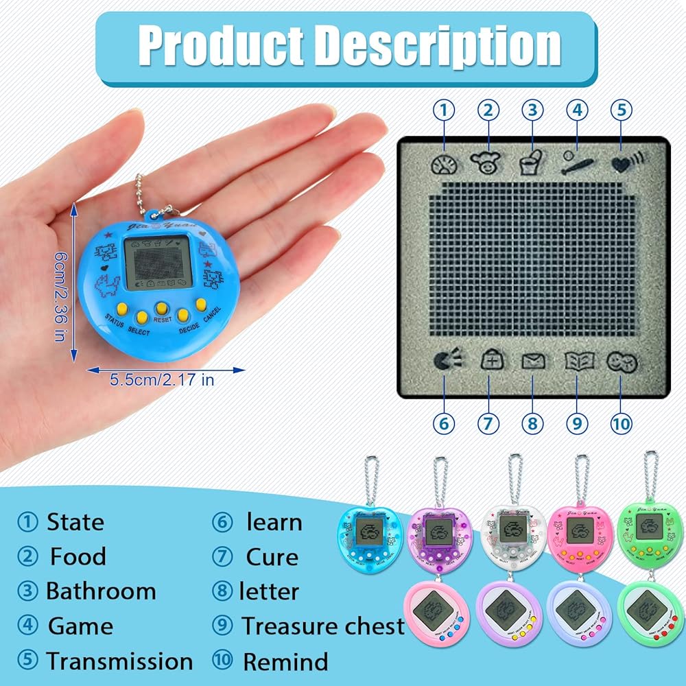 PleaPortable Size: each virtual digital pet keychain measures about 6 x 5.5 x 2 cm/ 2.36 x 2.17 x 0.79 inches, appropriate for hand holding and convenient for carrying and storing; The buckle is lightweight and easy to carry, and the hanging keychain can be easily fixed on the key, schoolbag or pocketse read the size instruction carefully before purchasing.