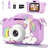 【Dual Camera and 64G Card】The kids camera for boys and girls has front and rear cameras, not only can take pictures of landscapes but also can take selfies. our toddler camera comes with a 64GB card(included), which will allow to store thousands of photos and videos, no need to worry about running out of storage, 64GB large capacity allows kids can take as many pictures as they want!