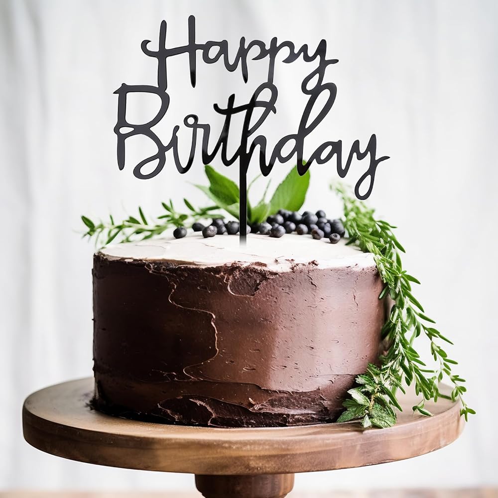 Black Birthday Decorations: Artistic font design black cake topper, its black colour and intricate design make it the ideal centrepiece for a birthday celebration, creating a stunning decorative effect