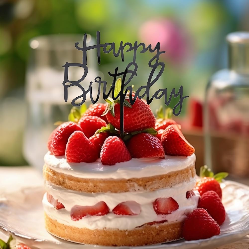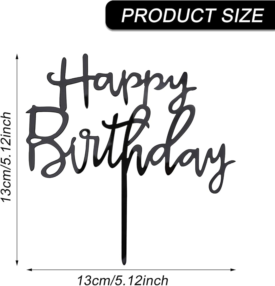 Black Cake Decorations Material: Happy birthday topper is made of reusable acrylic. Package includes 1 cake topper