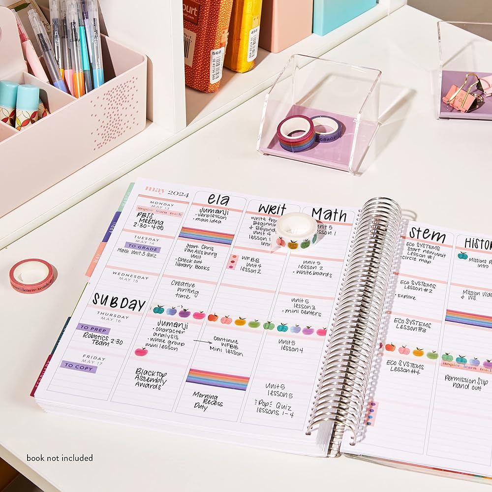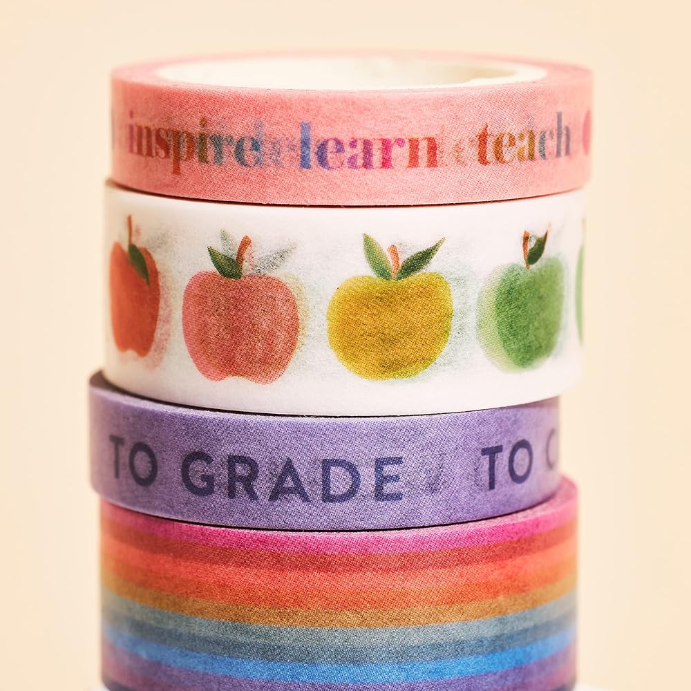 Erin Condren Washi Tape 4 -Pack - Rainbow Apples - شريط لاصق مزخرف وأنيق لتنظيم دفاتر الملاحظات. تسليط الضوء على المهام المهمة والمواعيد النهائية. أربعة لفات 16 قدم لكل عبوة
