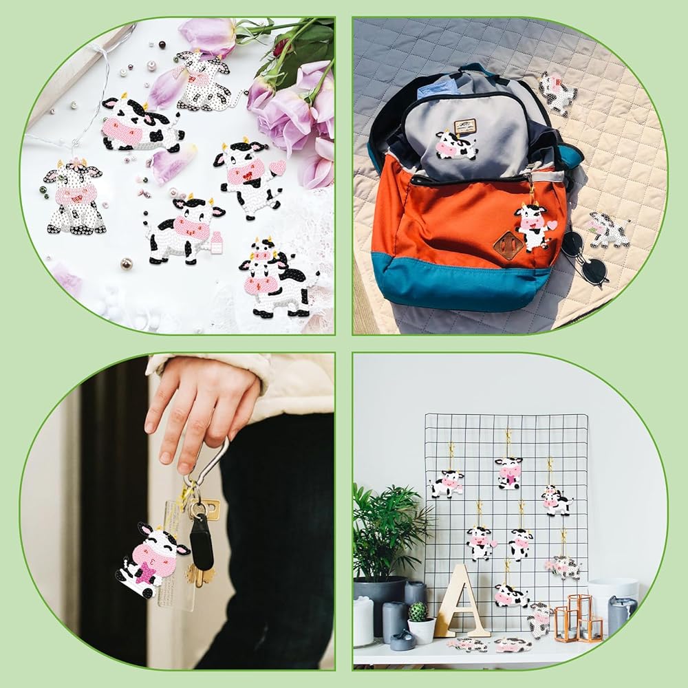 تصميم رائع: تم تصميم هذه المفاتيح الماسية 5D بعناصر بقرة جميلة ، وتبدو الماس المتلألئ أكثر براقة تحت الضوء. إنها رائعة وساحرة ومناسبة لمجوهرات مختلفة مصنوعة يدويًا