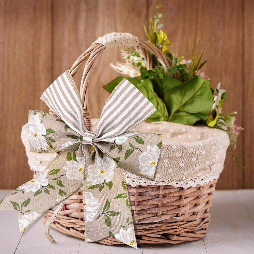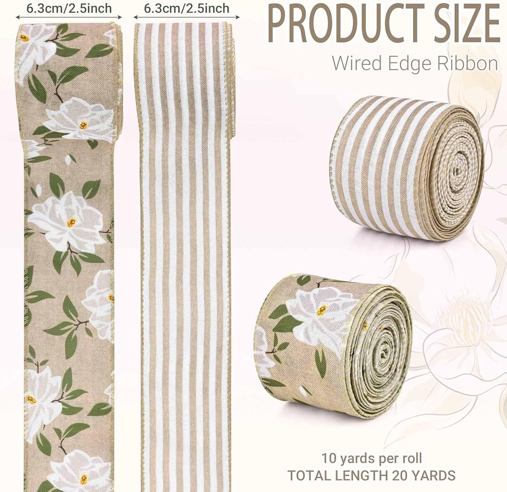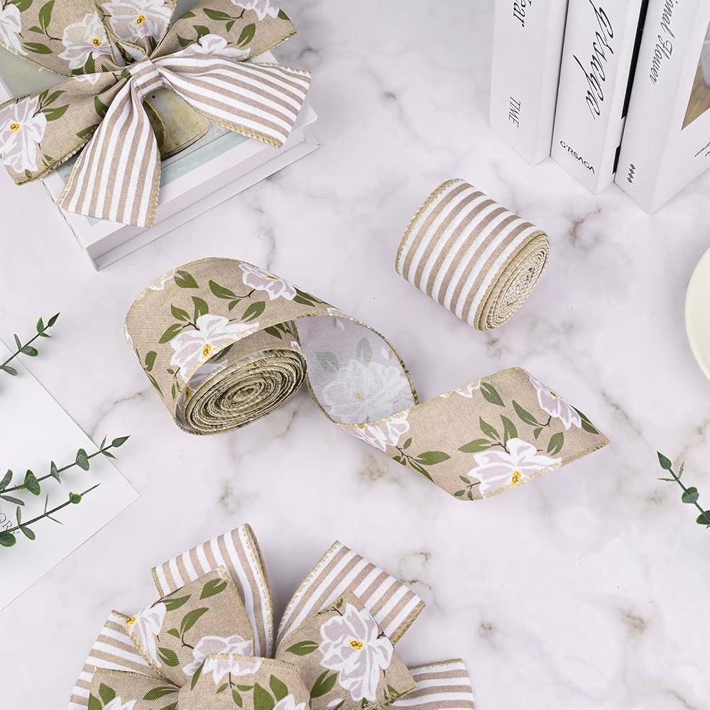 Package Contains: You will get 2 rolls of spring ribbons, 1 roll of magnolia ribbons and 1 roll of flaxen striped ribbons.