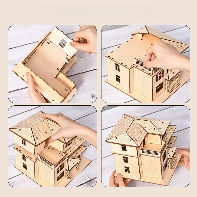 Put together your dream building! Each piece of this 3D wooden puzzle model is cut by high precision laser, tightly and smoothly assembled. Whether you are a model collector or a family seeking creative decorations, you can find fun in it. Teach and entertain, stimulate creativity Through disassembling, combining and observing the structure, children can intuitively learn the principles of building mechanics and improve hand-eye coordination; adults can relax and enjoy healing time while focusing on building. Thoughtful design, easy to use No need to glue, step-by-step assembly according to the number code. The instructions are well illustrated and can be quickly mastered by novices. It is recommended to start with simple styles and gradually challenge complex shapes!