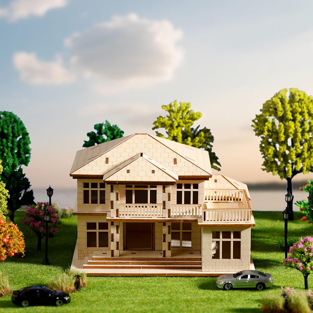 [ Modern Villa Model ] - This 3D puzzle architectural appearance of the modern villa is designed to highly reproduce the architectural details of the house we live in, and can be used as desktop decorations, home ornaments or collectibles after assembly.