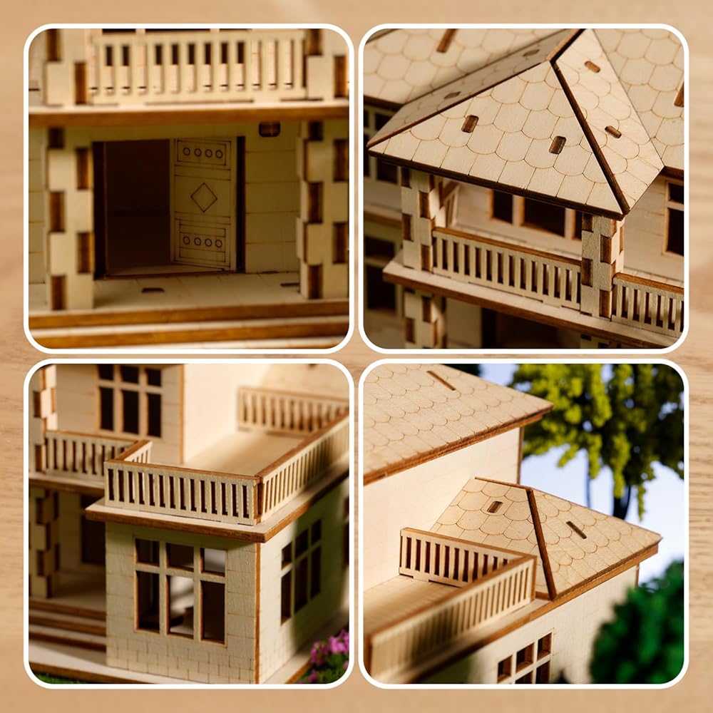 [ All-In-One-Package ] - Detailed illustrated instructions, together with all necessary parts, and some spare parts. Which does a favor to you to better experience the fun of mortise and tenon craft during the assembly of the Modern Villa.