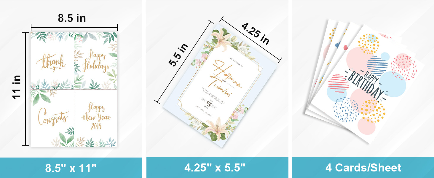 المواد الممتازة: تصنع البطاقات البريدية القابلة للطباعة من ورق الإزاحة عالية الجودة ، وسماكة 250 GSM ، والتي لن تتسبب في مربى الطابعة. تتميز بطاقات بريدية فارغة 4.25 "× 5.5" برقائق فائقة الدقة ، مما يضمن عملية فصل سلسة وبدون عناء. يرجى ملاحظة طي البطاقة على الخط المنقط قبل التمزق.