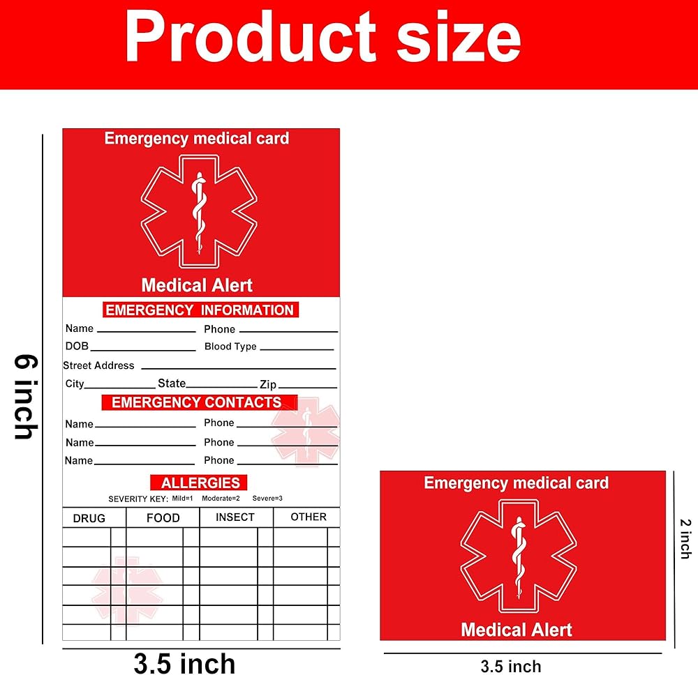 Perfect Size: Each emergency medical information card has a foldable size of 2 x 3.5 inches, Emergency Contact ID Wallet Card is suitable for carrying around or placing anywhere in a wallet or on the information card. Easy to remind emergency personnel of your medical condition in a timely manner!