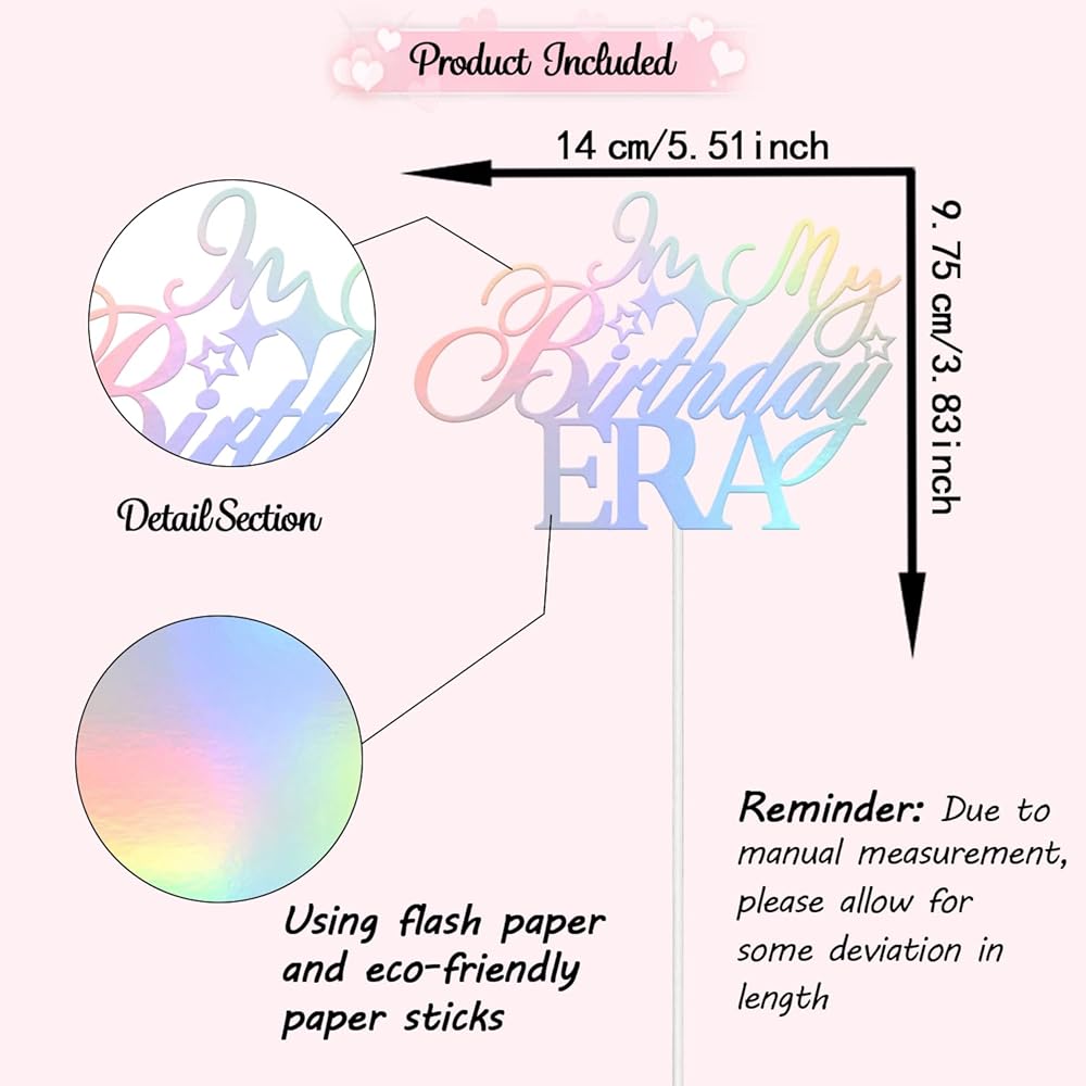 1Pc In My Birthday Era cake topper. Our cake toppers have already assembled, saving your time with using the fully assembled toppers.