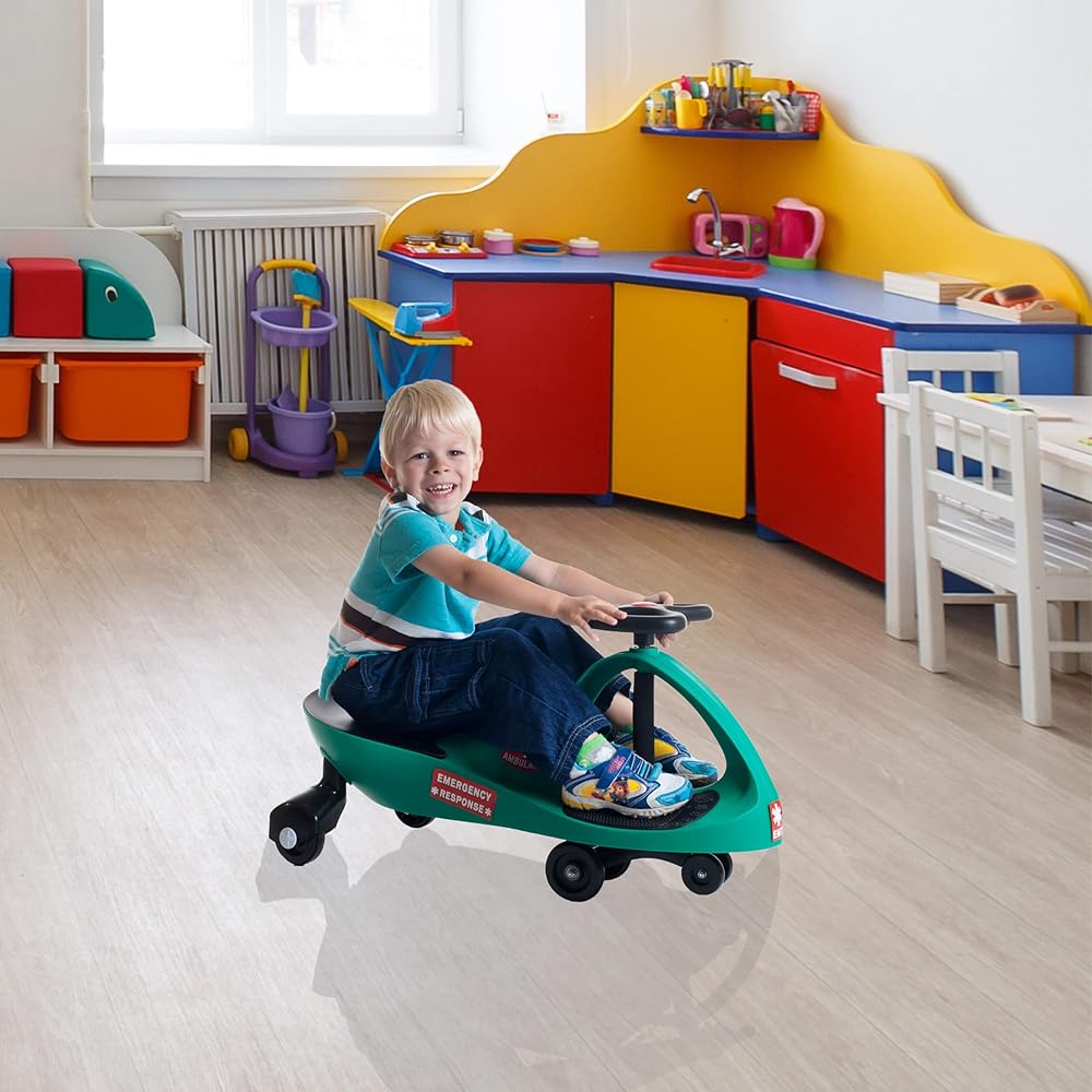 For the kids, the Lil' Rider Wiggle car is pure energy and pure fun. For the folks, it's safe, inexpensive, and quiet!Looking for a children's toy that will delight, fascinate, and invigorate for years to come? Come to the rescue with the perfect toy, the revolutionary new Lil' Rider Wiggle car. It's like magic, but you don't need to be a magician to get it to work. The Lil' Rider Wiggle car is a mechanical marvel that makes use of that most inexhaustible of energy sources, kid-power, by harnessing the natural forces of inertia, centrifugal force, gravity, and friction. It's so easy to operate; all it needs is a driver and a smooth, flat surface. It doesn't require an expensive power source that needs constant replacement. No batteries, no power-cells, no liquid fuel-just the occasional cookie or two. It's quiet too-the only sound you'll hear is the sound of its wheels. It provides kids with plenty of exercise, more so than most toys. And the Lil' Rider Wiggle car is engineered to be absolutely safe when used appropriately.