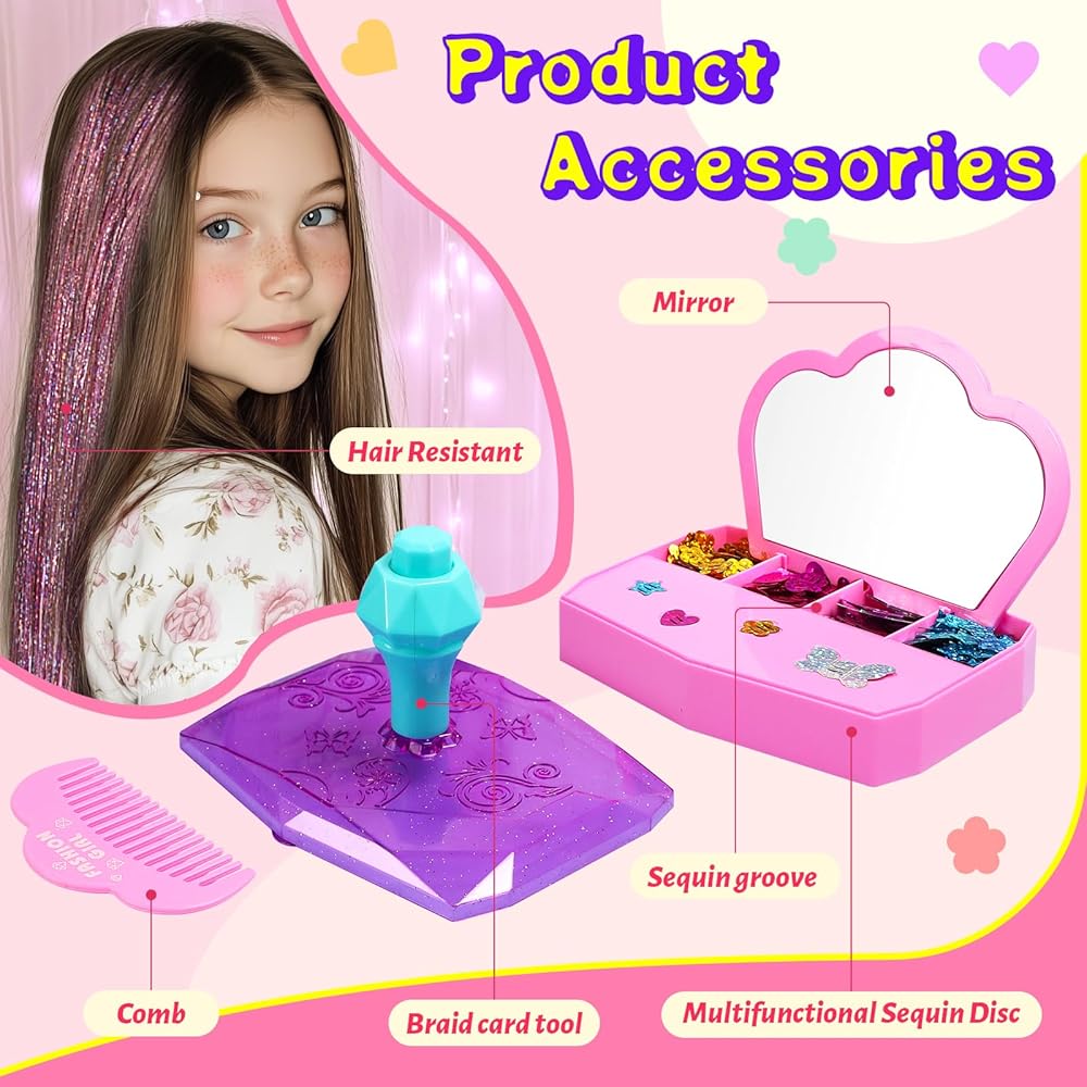 تجربة ملابس مذهلة: تجمع هذه الجوهرة ذات الشعر الجوهري للفتيات بين المرح والأزياء. شملت 200 قطعة لمعان (النجمة ، القلب ، أنماط الفراشة) ، 4 قطع شعر مستعار متعدد الألوان ، وعصابات جلدية ملونة. يمكن للأطفال تصميم تسريحات الشعر الفريدة ، وتعزيز خيالهم وإبداعهم من خلال اللباس ، مما يوفر متعة وإثارة لا نهاية لها مع كل وقت جديد لللباس. يتضمن أيضًا مشطًا صغيرًا ومرآة وصندوق حلية لطيف للتخزين.