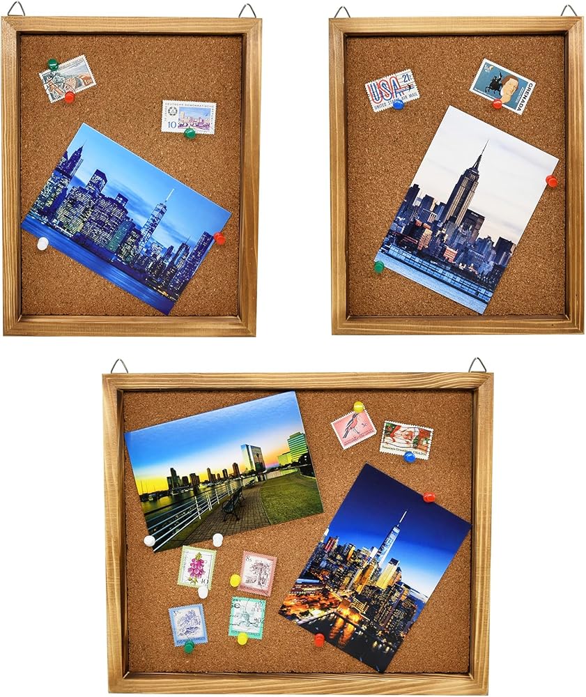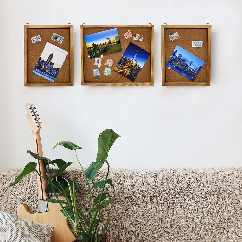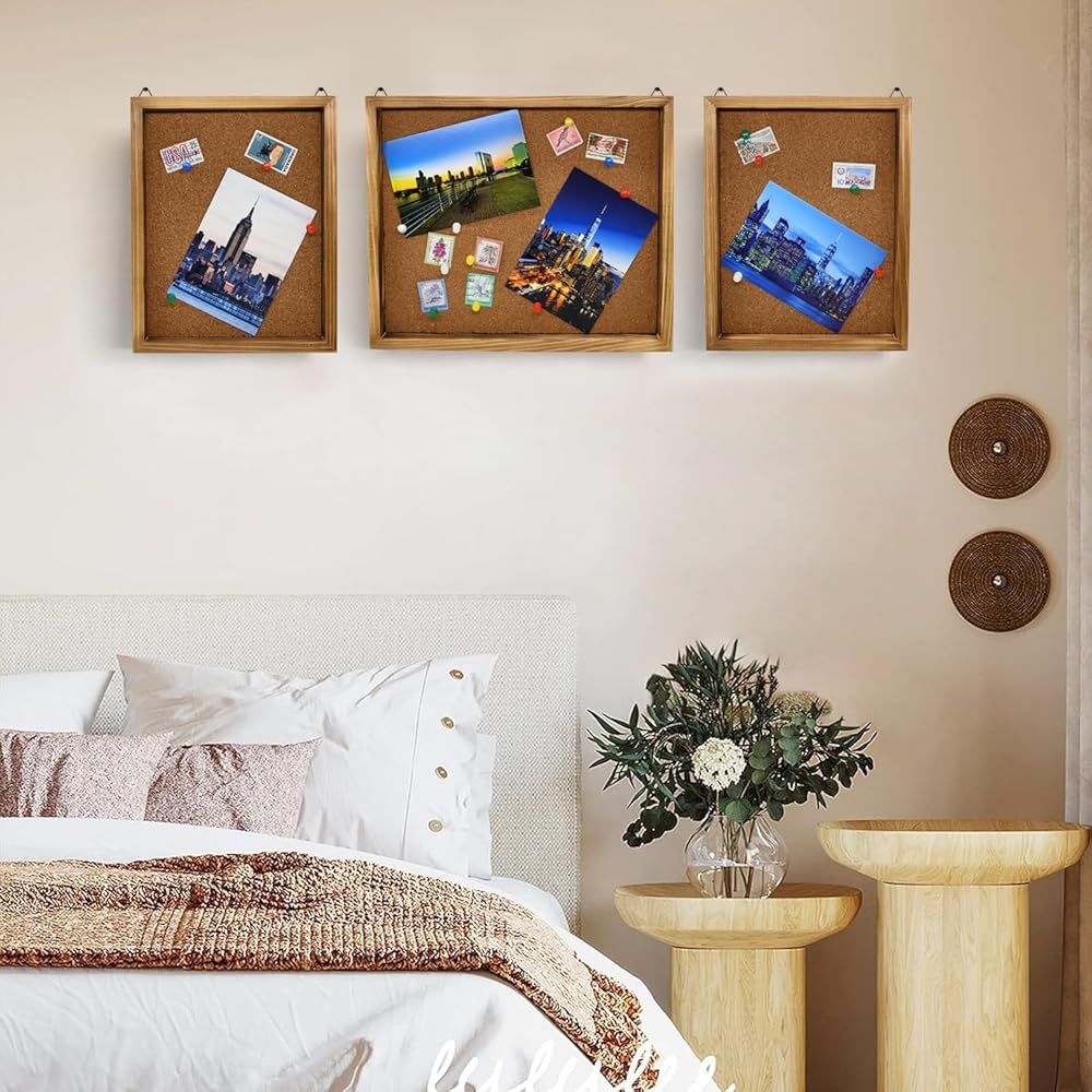 لوحة Bulletin Board Cork ، صورة مستطيل مزخرفة مؤطرة ألواح الدبوس الخشبية الصلبة للمطبخ غرفة نوم على الحائط ، وتزيين المكتب أو لوحة الرؤية - مجموعة من 3