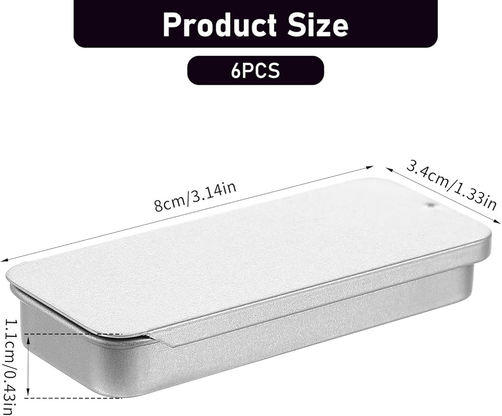 6 أجهزة كمبيوتر جيب القصدير الصفيح الشريحة العلوية حاويات القصدير حاويات الصناديق المعدنية المصغرة الحاويات الحاويات المحمولة الحاوية حاويات علب المفصلية الفارغة مستطيلة لصم الحاويات (3.14 × 1.33 × 0.43 بوصة)