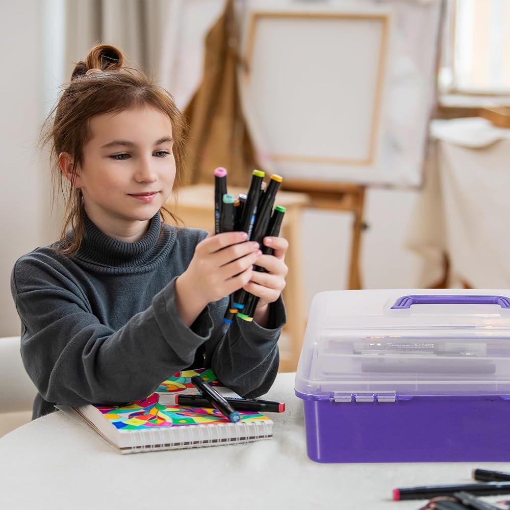 • WHAT YOU GET:; </strong>Color: Trans Purple; Size: 32 x 14 x 18 cm / 12.6 x 5.51 x 7.09 inch; Package Includes: Art Tool Storage Box x 1
