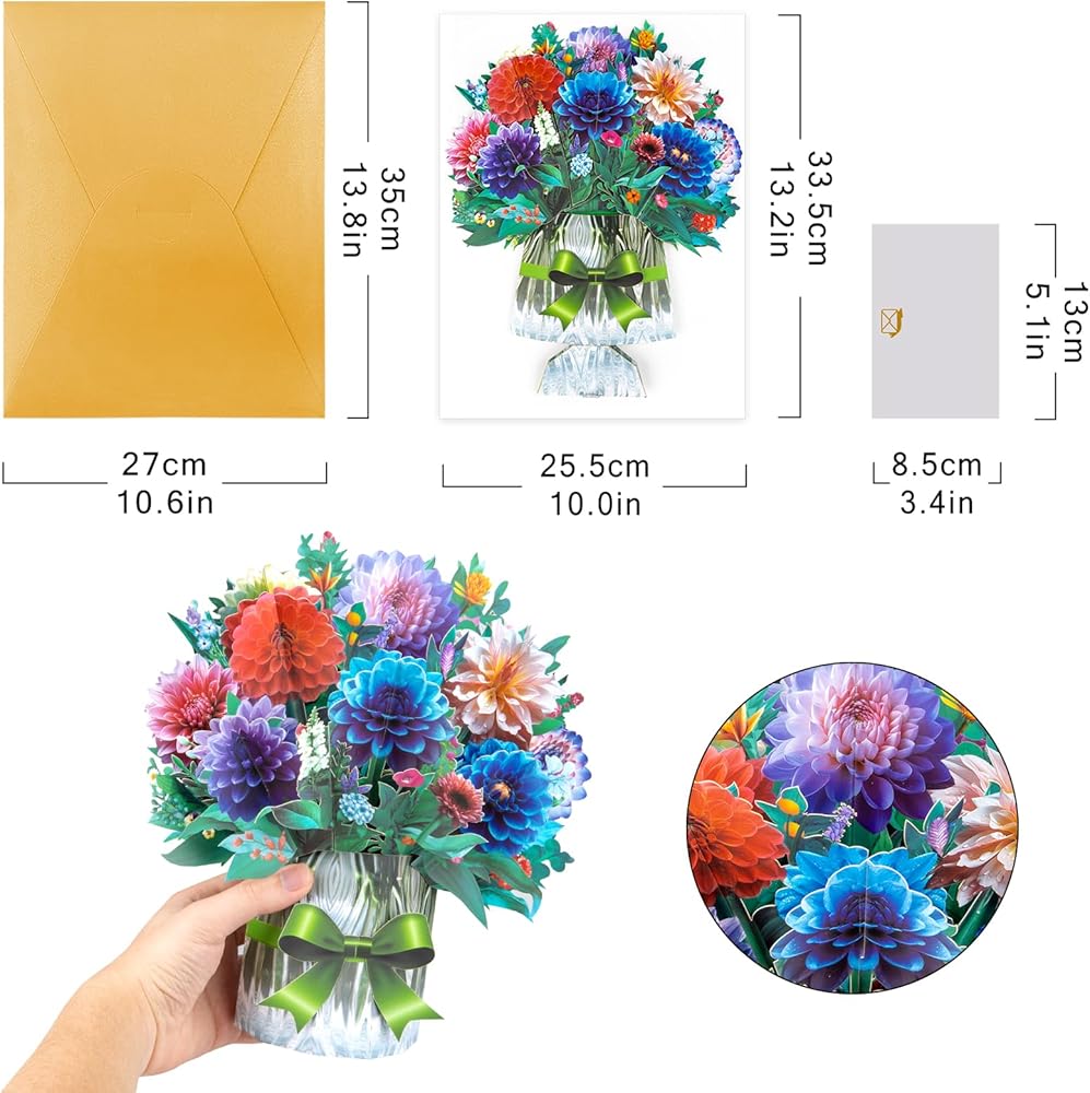 • "مثالية للمناسبات الخاصة: هذه البطاقة المنبثقة ثلاثية الأبعاد هي هدية مدروسة لمجموعة من المناسبات ، بما في ذلك أعياد الميلاد أو الذكرى السنوية ، أو ببساطة لإرسال شخص ما إلى تحية مستوحاة من الأزهار. من المؤكد أن تصميمها المعقد وألوانه النابضة بالحياة يجعل يوم أي شخص أكثر إشراقًا."