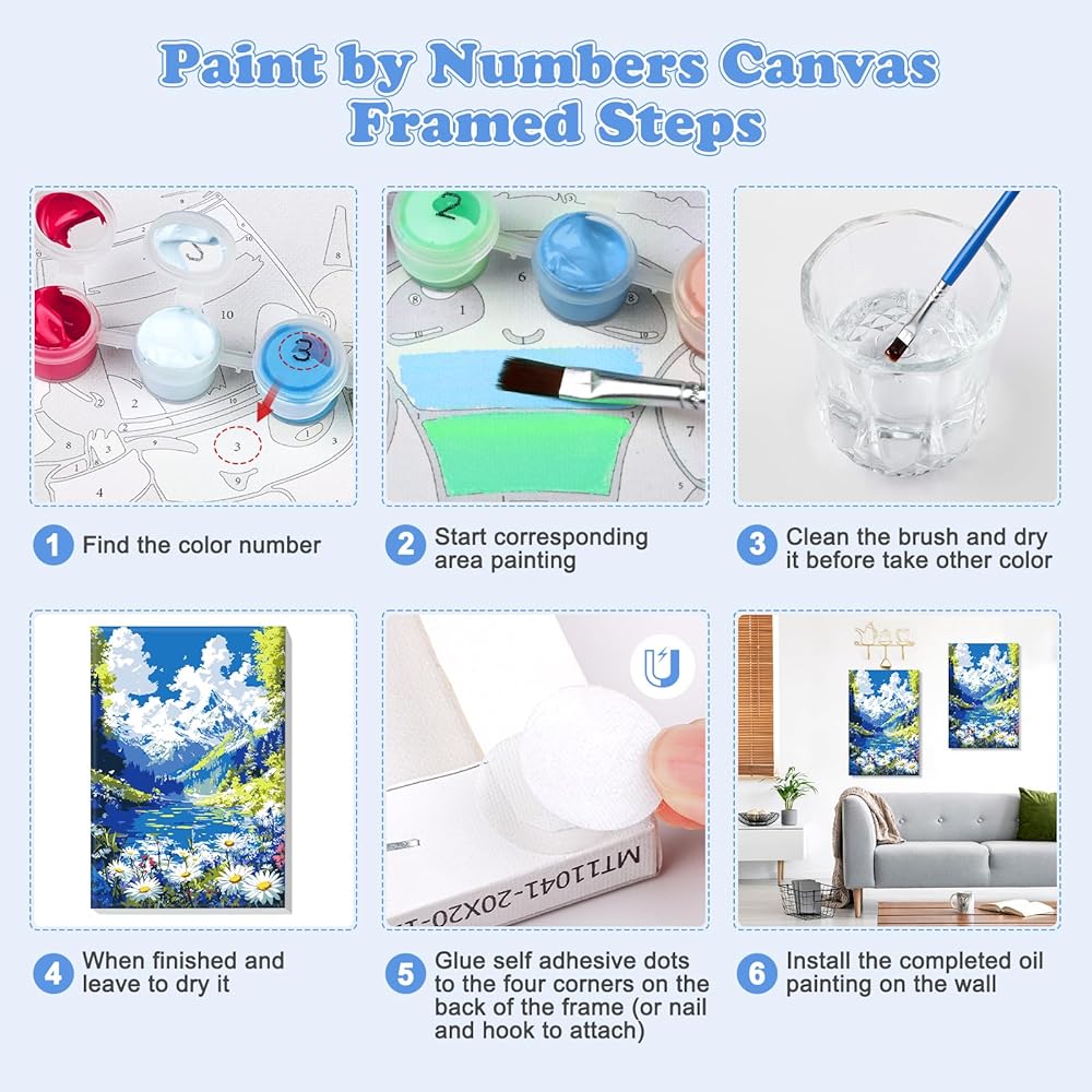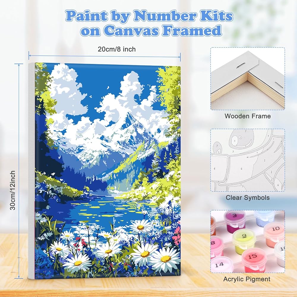 • الطلاء بأرقام أرقام: 8 × 12 بوصة حجم قماش مع إطار ، ونمط بسيط ولطيف ، واضحة المطبوعة مسبقًا ، ولا توجد مهارات في الطلاء. فقط بحاجة إلى متابعة الأرقام الموجودة على القماش وبعد ذلك يمكنهم إنشاء لوحة رائعة بمفردها