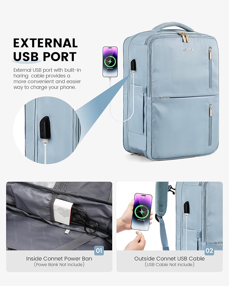 • 【منفذ شحن USB】: يوفر منفذ USB المدمج وسيلة سهلة لشحن أجهزتك من قبل بنك الطاقة المتصل الذي يتم وضعه في جيب مخصص للطاقة. لا حاجة للحفاظ على بنك الطاقة في متناول اليد أثناء المشي (لا يتم تضمين بنك الطاقة). هذه حقيبة تحمل على النساء تحرر يديك ولا تقلق بشأن نفاد قوة الهاتف عند الاستمتاع بهاتفك.