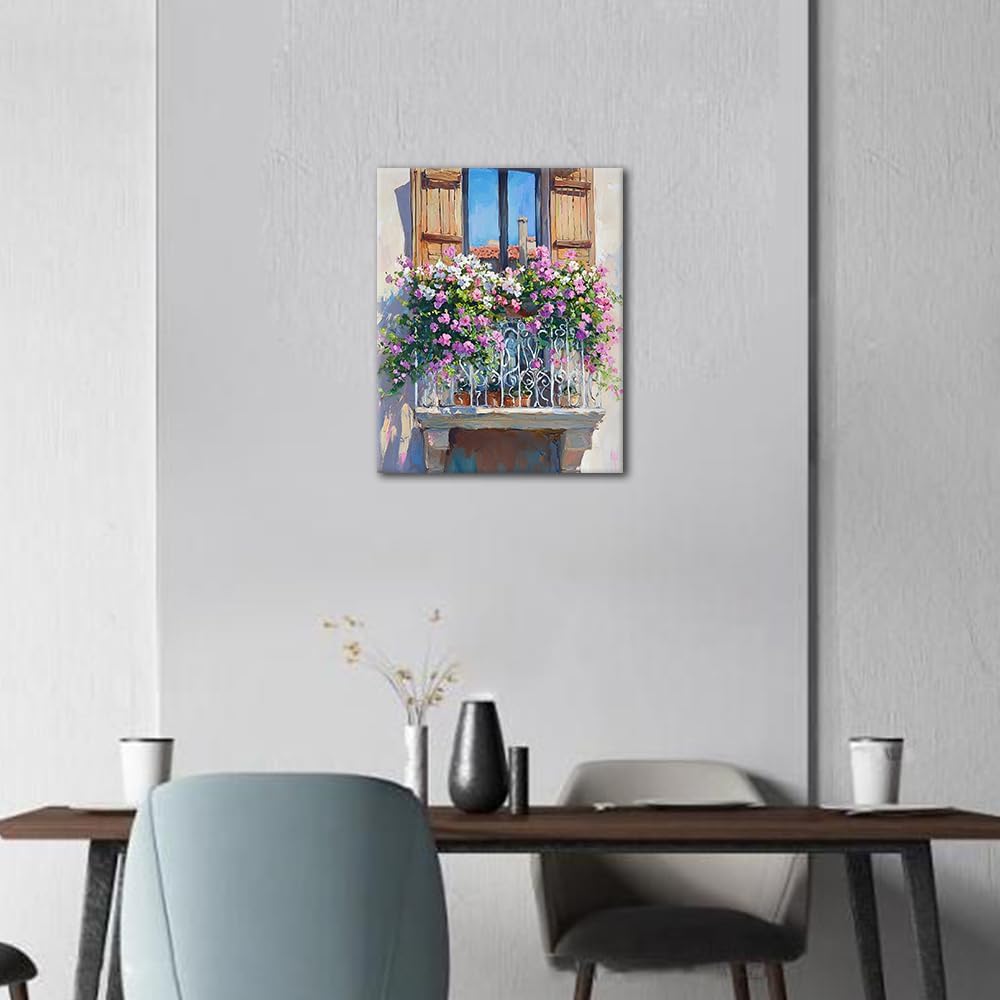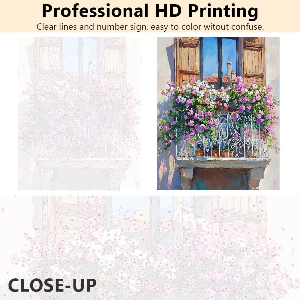 طلاء Tumovo بأرقام للبالغين شرفة جميلة مع الزهور في بروفانس للبالغين الطلاء من قبل مجموعات أدوات الطلاء المناظر الطبيعية في فرنس