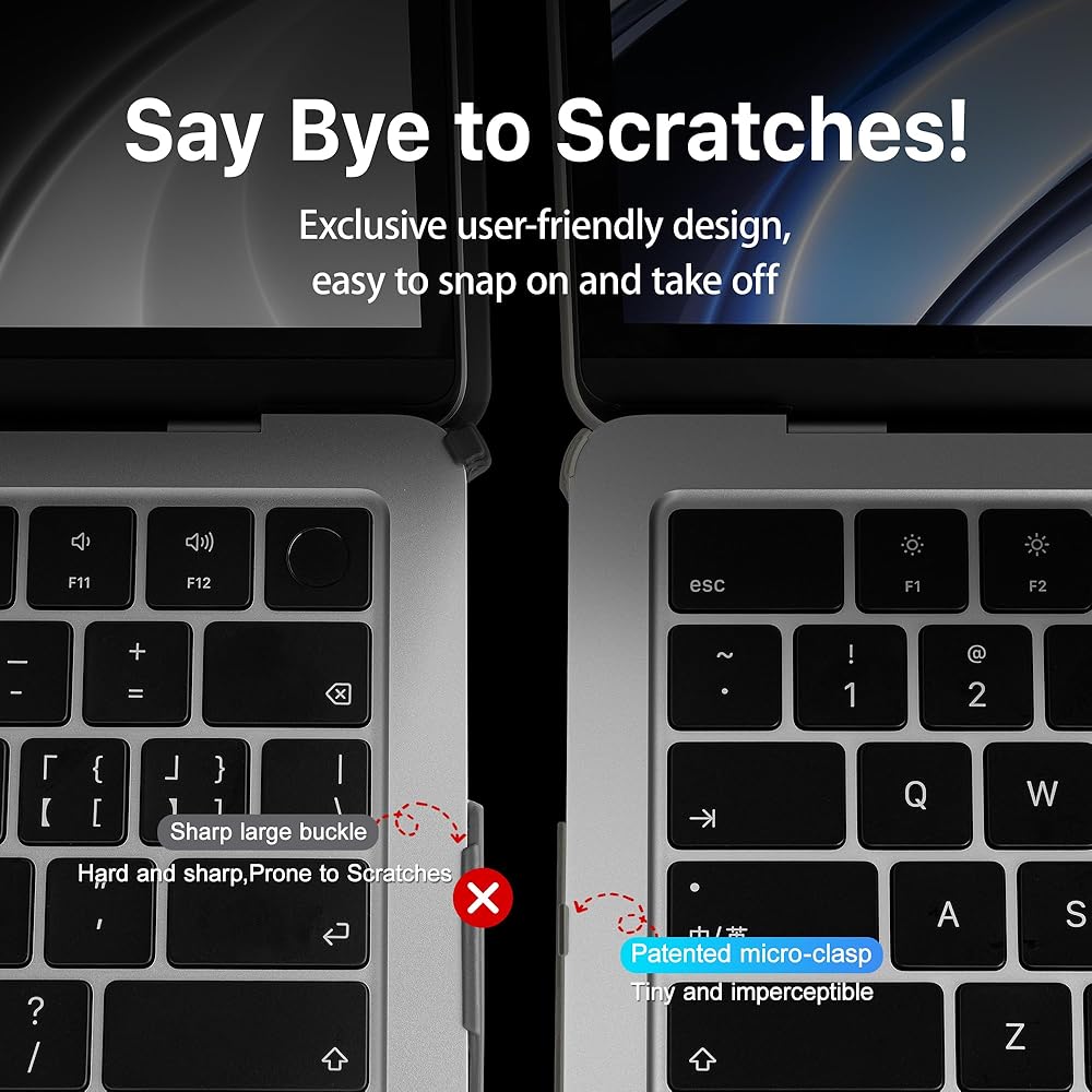 Say Bye to Sharp Large Buckles: Macbook Air model A3113 Case-Adopt patented micro-clasp, tiny and imperceptible, lets you say goodbye to hard and large buckles, is prone to scratches, exclusive user-friendly design, easy to snap on and take off