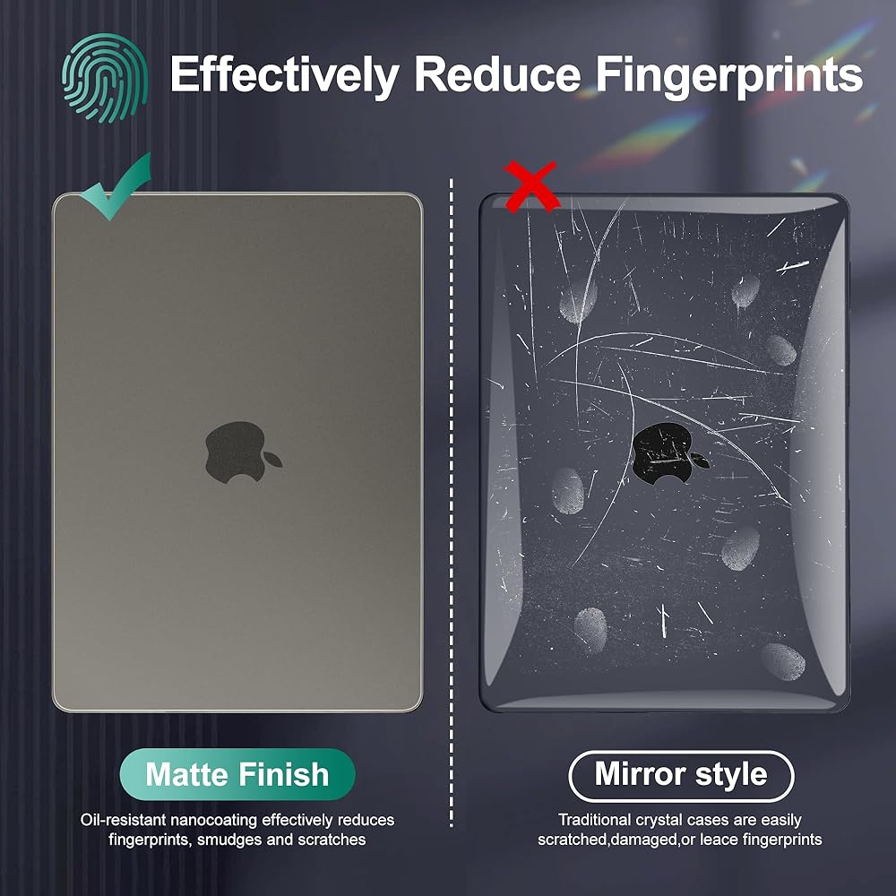 As Same as Bare Macbook Metal Texture: Different from traditional matte plastic cases, A2681 Macbook Air Case ultra-thin matte transparent with Nanotechnology, and effective anti-fingerprints, and perfectly shows the color and logo of your MacBook as same as bare. Macbook Air M3 2024 Case frosted feel provides a comfortable, safe, super toughness, soft protective