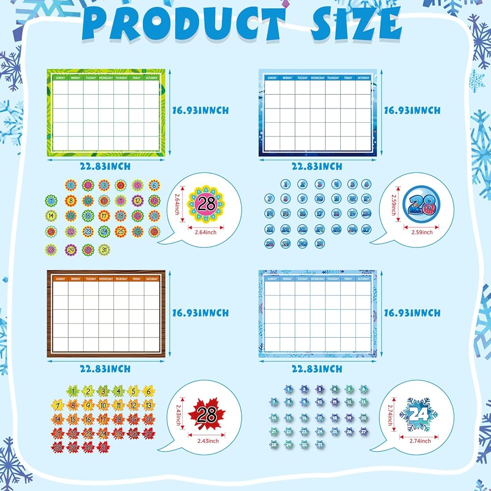You will receive 190 pieces of 4 seasons classroom calendar set, different styles and sufficient quantity to meet your decoration needs. Suitable size that can satisfy your different decorating needs. Just tape calendar classroom bulletin board decor on the wall, bulletin board or other places according to your imagination.