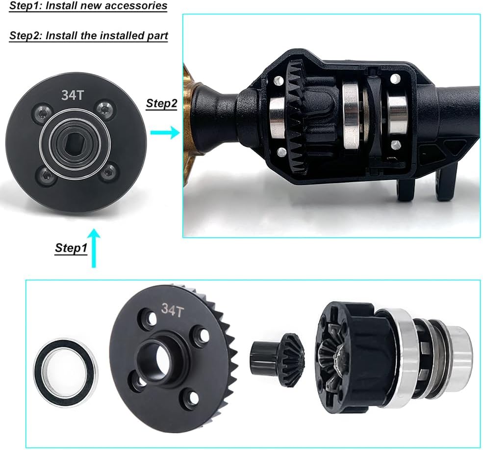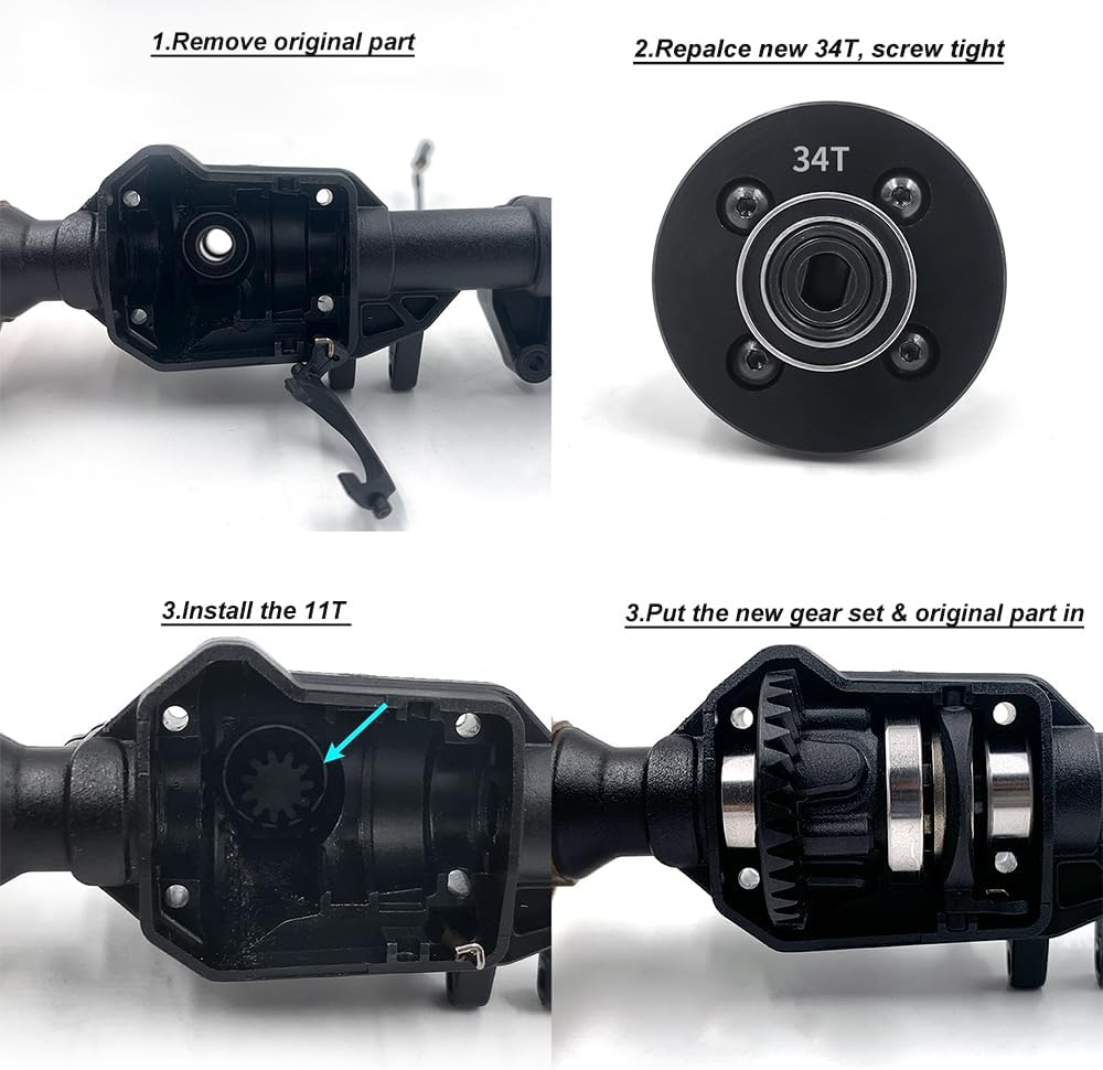 MOHERO Aluminum Alloy RC Diff Gear Helical Diff Ring/Pinion Gears 11T 34T for TRX4 RC Crawler Car Upgrade