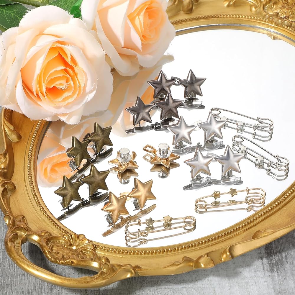 Mabor 12 Set Pant Pant Weist Trainener Star Butons for Volouse Jeans Star Button for Jeans لصنع أصغر Cincher Clip Metal Star Brooch لتنانير فساتين الملابس