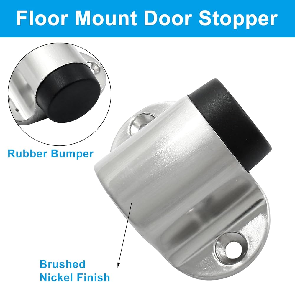 Heavy Duty Door Stop: Made of thickened zinc alloy with brushed nickel finish, the door stoppers wall protector is durable, rustproof and sturdy.