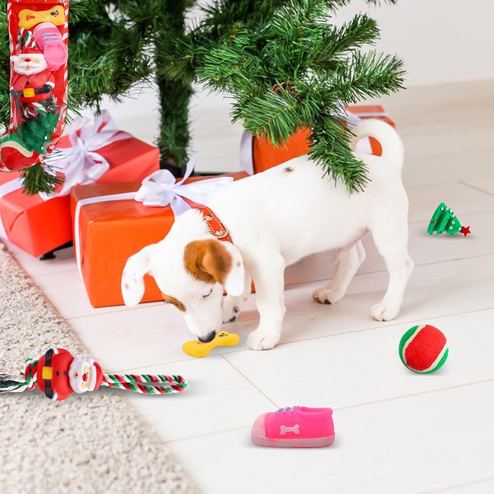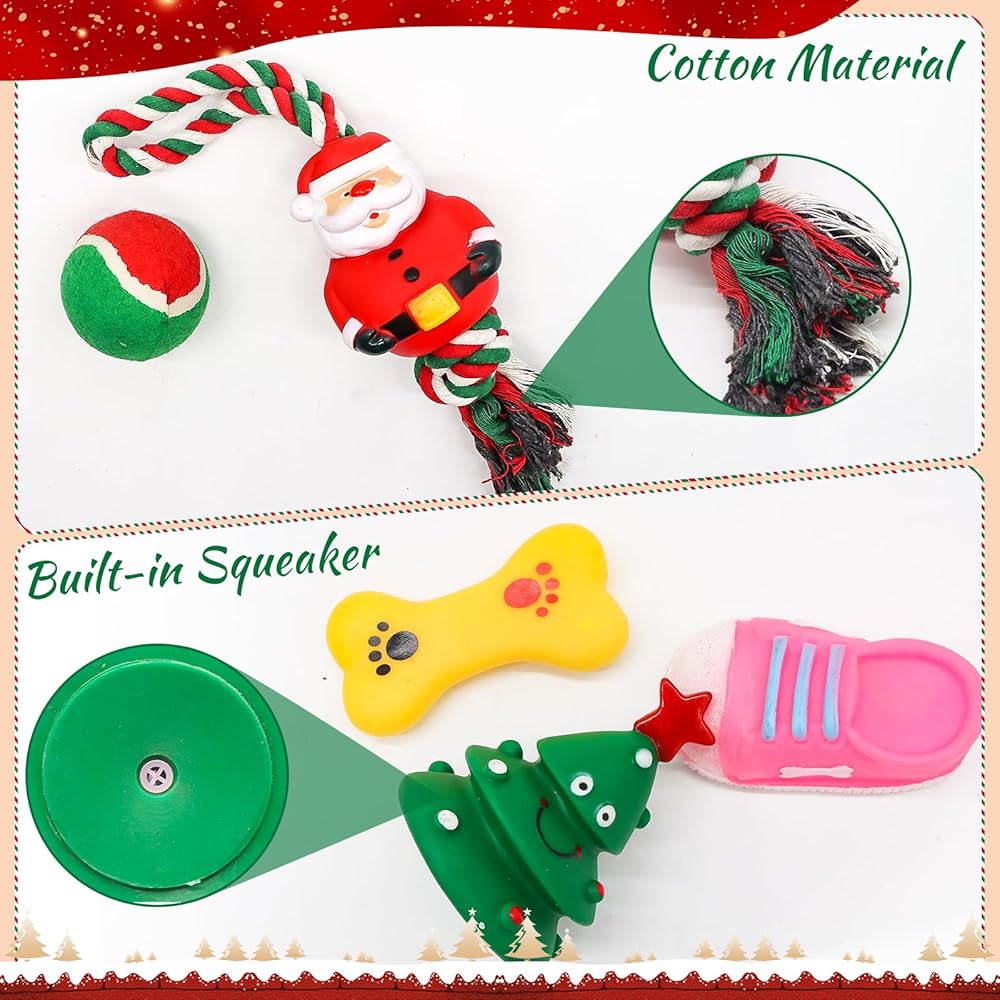 ألعاب الكلاب تخزين عيد الميلاد ، ألعاب الكلب الكلب 5pcs في عيد الميلاد مع لعبة سانتا روب ، ألعاب الكلاب الصاخبة ، كرة تنس ، مستلزمات للحيوانات الأليفة لزخارف عيد الميلاد الصغيرة والمتوسطة التفاعلية