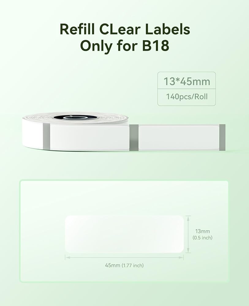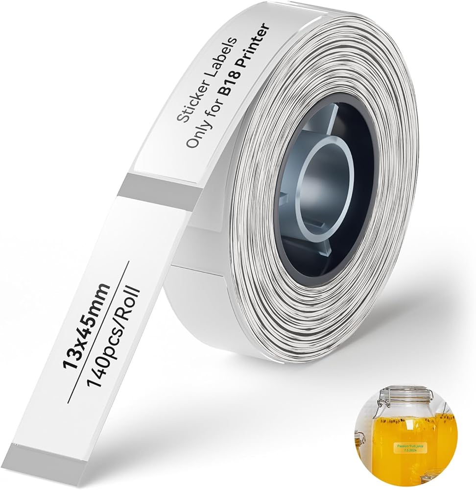 【195 تسميات/لفة】 فقط لطابعة Niimbot B18 Label. لفة من ملصقات النقل الحراري للورق 0.5 '× 1.18' (13x30 مم).