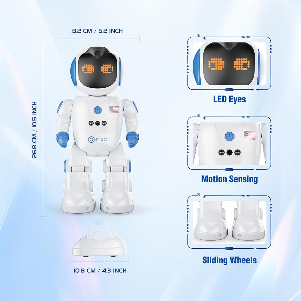 الروبوت القابل لإعادة الشحن: يأتي هذا الروبوت الذكي للأطفال مع بطارية قابلة للشحن ، والتي تساهم في حماية البيئة. يمكن شحن البطارية عبر منفذ USB ، مثل الكمبيوتر أو بنك الطاقة. وقت الشحن حوالي ساعتين ، ويمكن استخدام الروبوت لمدة 30 دقيقة. سيتم تشغيل ضوء المؤشر أثناء الشحن ، وسيتم إيقاف تشغيله عند شحنه بالكامل. يتطلب جهاز الإرسال 2 بطاريات AAA (غير مدرجة).
