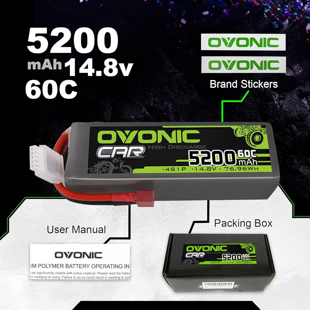• 🔋package - بطارية Lipo 4S Ovonic 4S ، ملصقات العلامة التجارية 2x ، دليل المستخدم. يرجى قراءة دليل المستخدم بعناية قبل استخدام ، إذا كان لديك أي مشاكل ، اتصل بنا مباشرة وسنرد عليك في غضون 24 ساعة