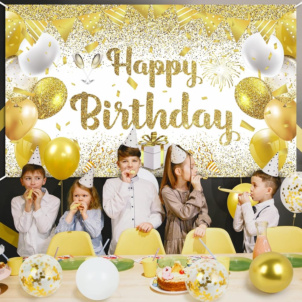 1 * Gold and White Birthday Party Banner