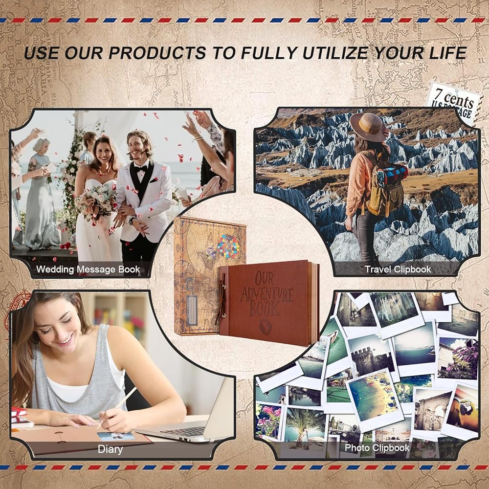 • ❤ Size & Cource : سوف تتلقى كتابًا للمغامرات بحجم 11.9*7.6 بوصة ، ما مجموعه 40 ورقة/80 صفحة ، تغليف مربع هدايا رائع ، رباط جلدي ، يحتوي الصندوق على 9 طوابع ، 6 بطاقات بريدية ، 2 ملصقات ملصقات مائلة للحب.