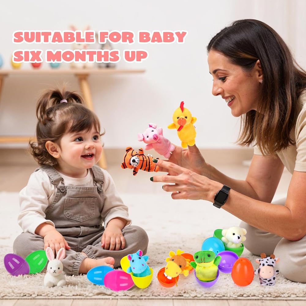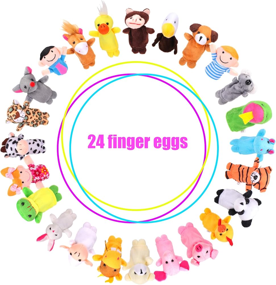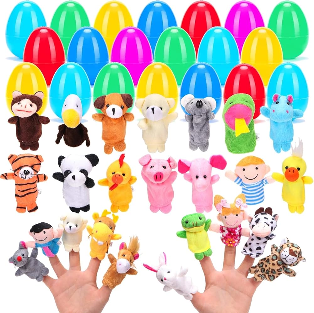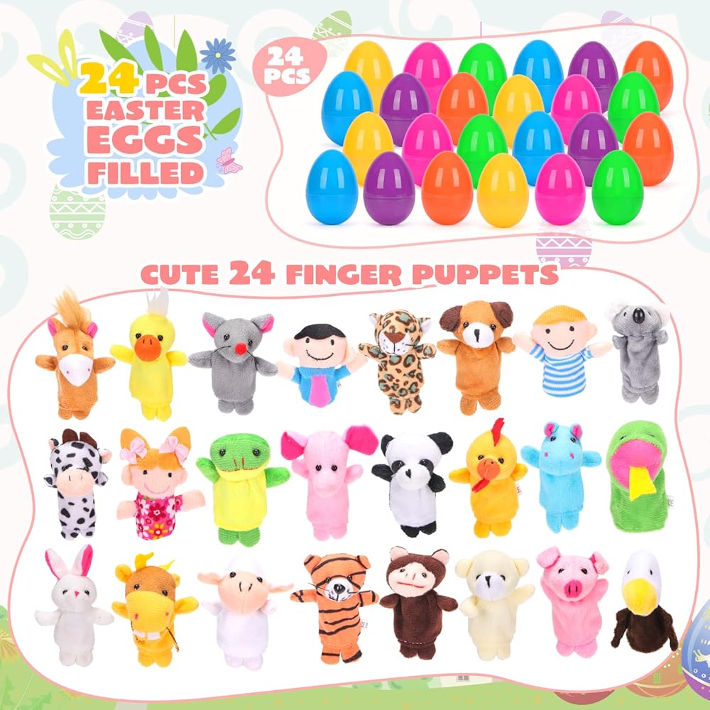 24 قطعة من بيض عيد الفصح المليئة بدمى الأصابع، بيض عيد الفصح المملوء مسبقًا ودمى الحيوانات الكرتونية لحشو سلة عيد الفصح، صيد بيض عيد الفصح، هدية لحفلة عيد الفصح للأطفال