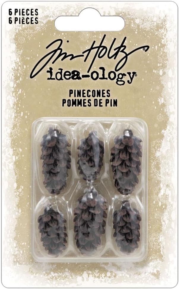 Tim Holtz Idea-Ology 2023 Christmas Pinecones - Bundle of Two Packages: These rustic miniature Pinecones are the perfect addition to any wintery scene! Add to any holiday craft for an ornamental feature. Make miniature wreaths, or add to any holiday craft project for a little dimensional flair. Each package contains 6 pieces constructed of resin. They range in size from 3/4 to 1 inch in height.