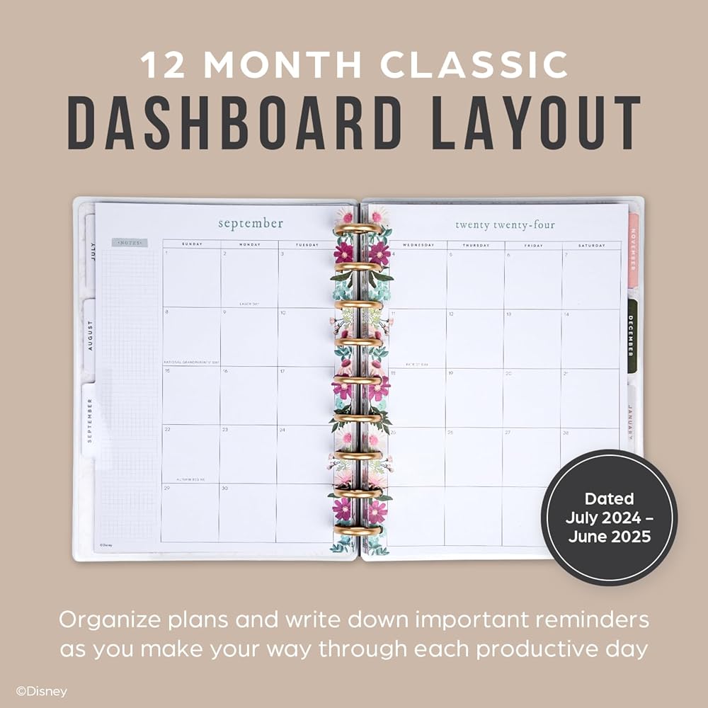 التصميم: يتضمن هذا المخطط لمدة 12 شهرًا 12 شهرًا من التقويمات والفروق الأسبوعية. تتميز المقسمات الـ 12 بعنوان اقتباس الحميم والرسوم التوضيحية ديزني القديمة. تحمي الأغطية المقطعة القوية الصفحات ، وتسمح لك الأقراص البلاستيكية بالتخصيص باستخدام ملحقات المخطط باستخدام نظام DISC المرتبط.