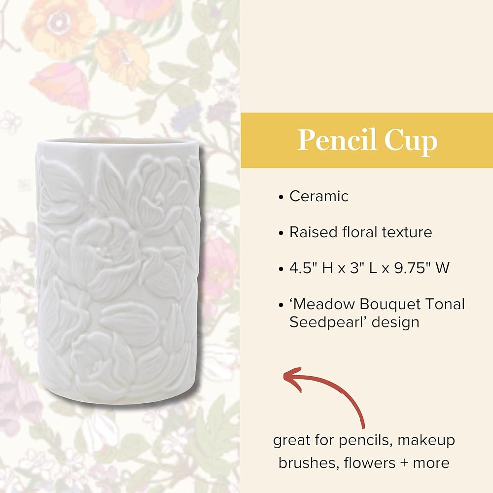 فيرا برادلي حامل قلم رصاص لطيف للمكتب مع تصميم الأزهار المرتفع ، منظم مكتب المكاتب السيراميك ، ميدو بوكيت بذور بذور النغمة