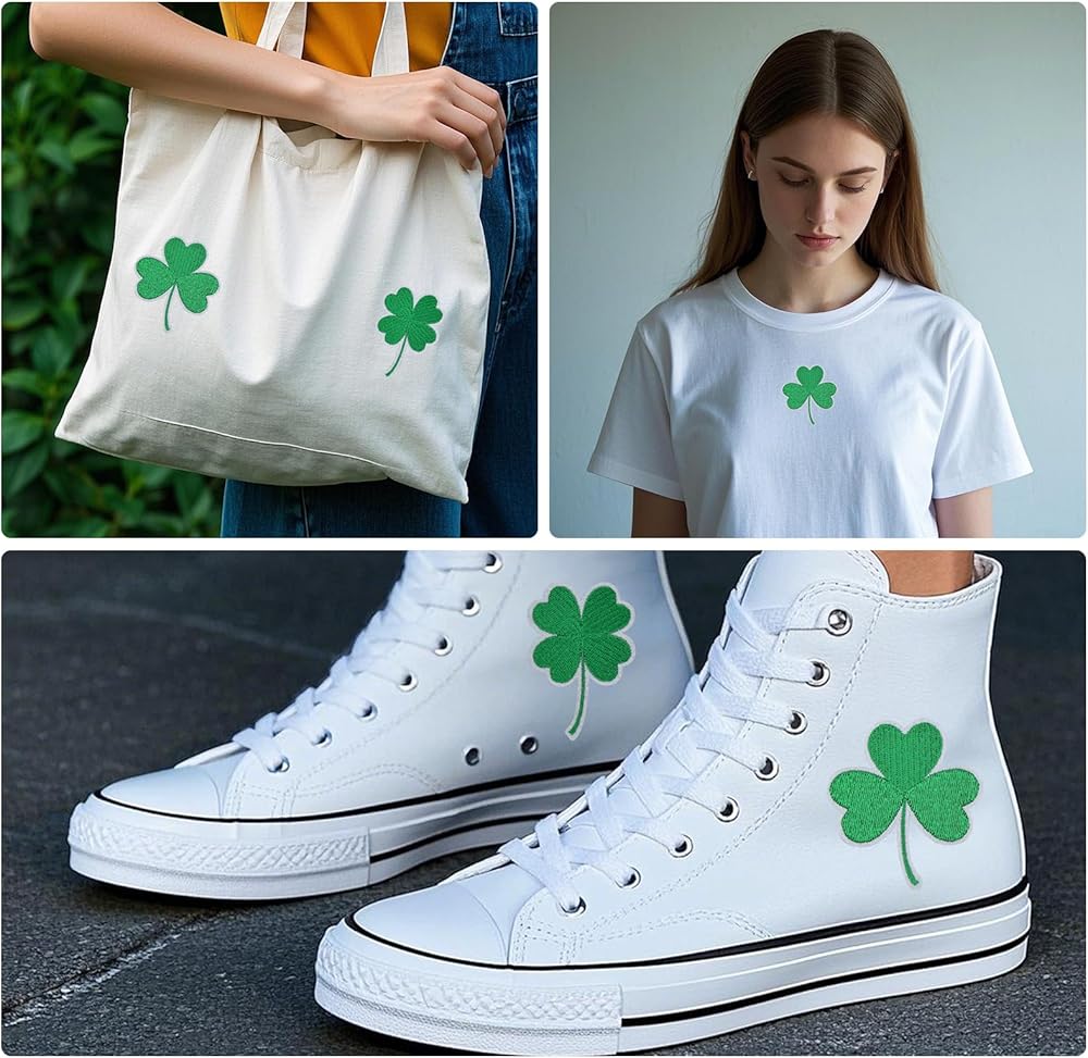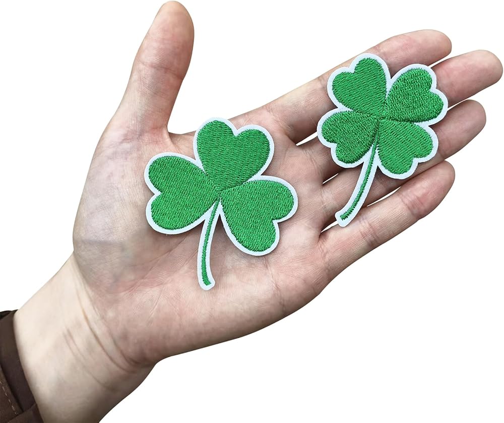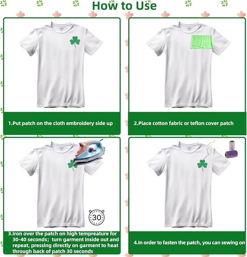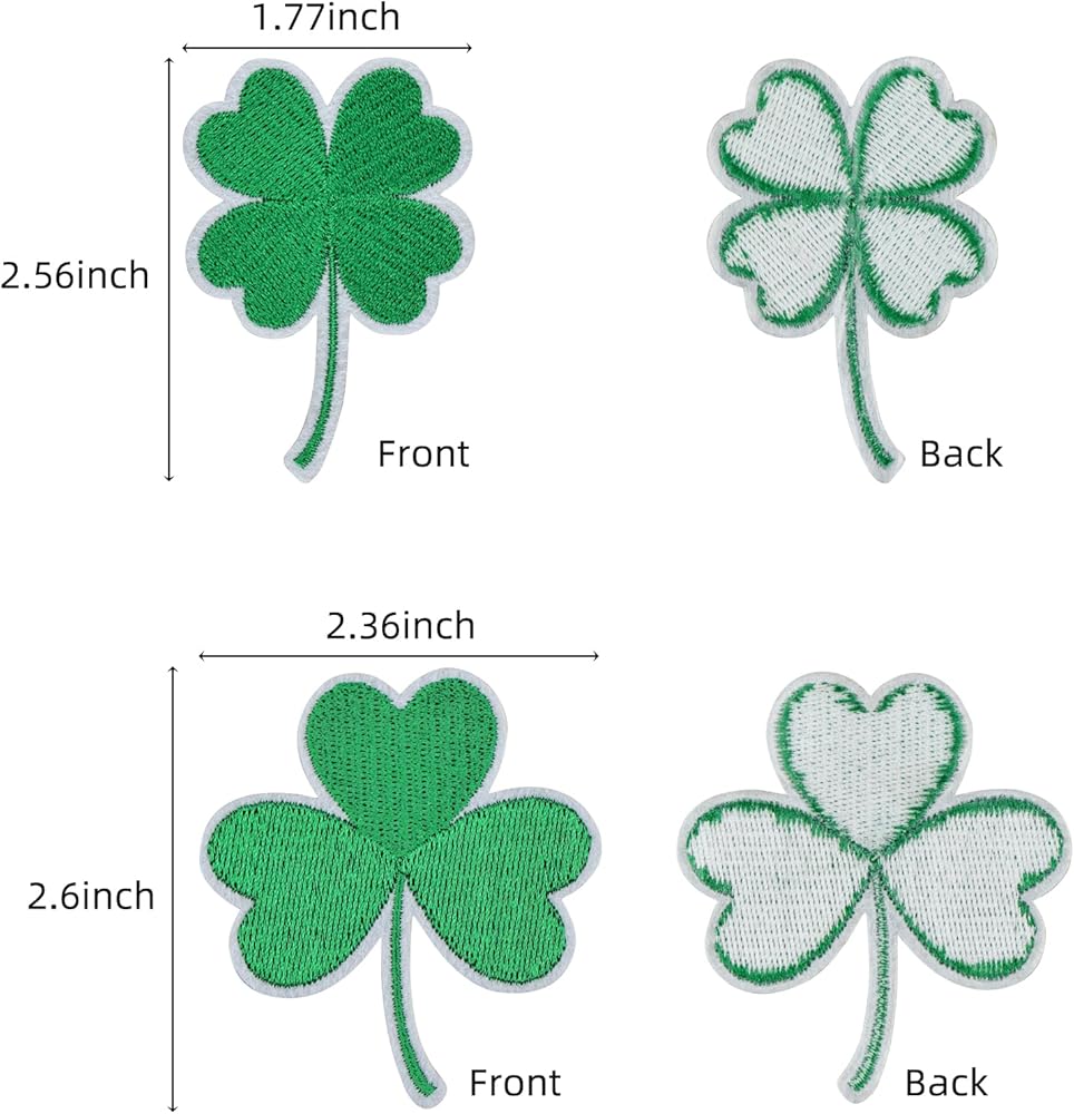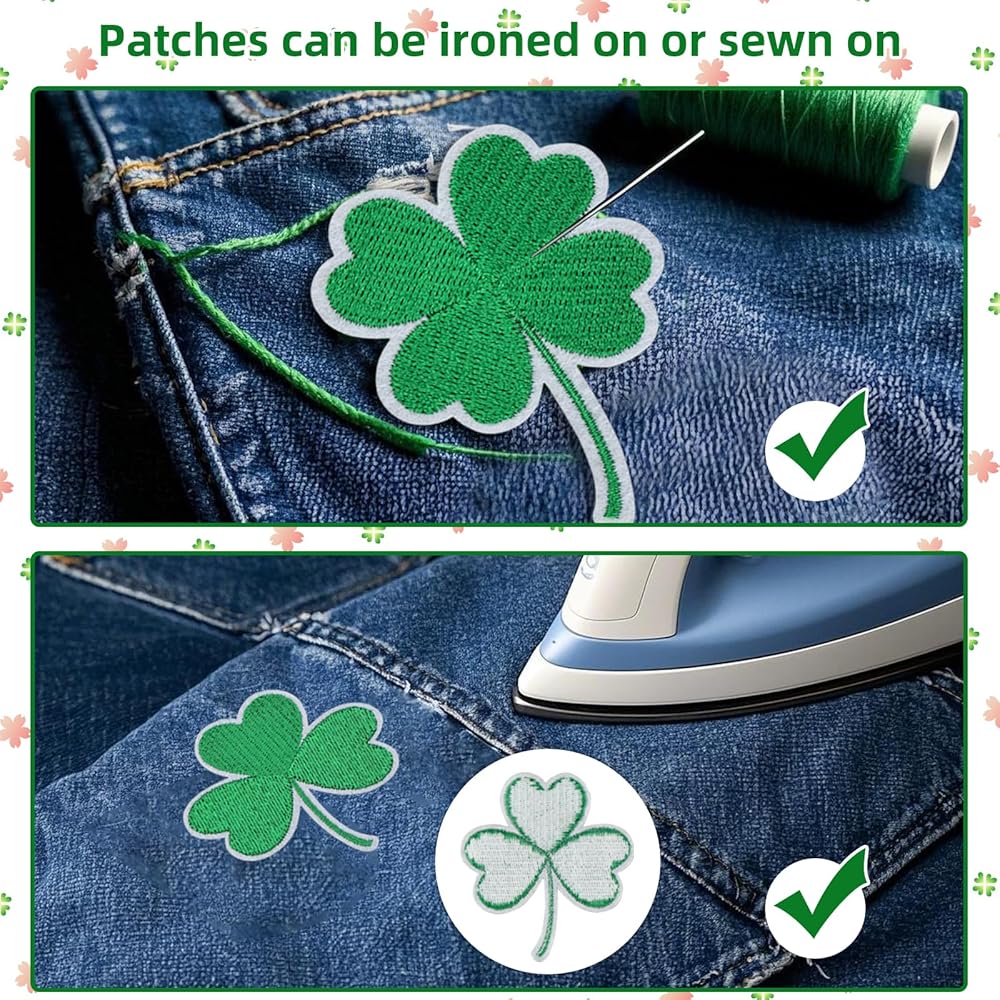 Package Includes: There are 10pcs shamrock iron on patches and 10pcs four leaf clover patches. They can be iron on or sewn on