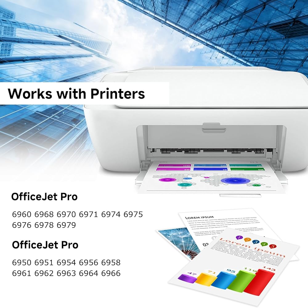 The printer ink 902 xl black compatible with: OfficeJet 6950, 6951, 6954, 6956, 6958, 6961, 6962, 6963, 6964, 6966; OfficeJet Pro 6960, 6968, 6970, 6971, 6974, 6975, 6976, 6978, 6979 Printers