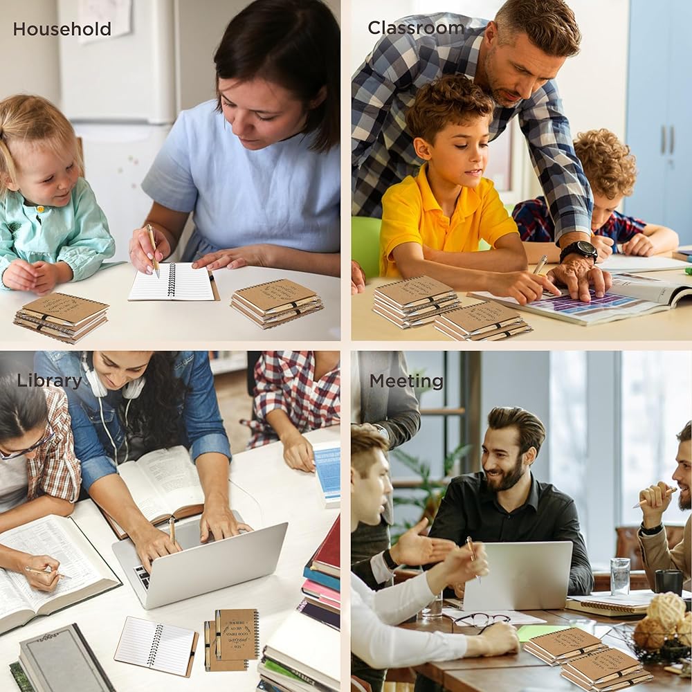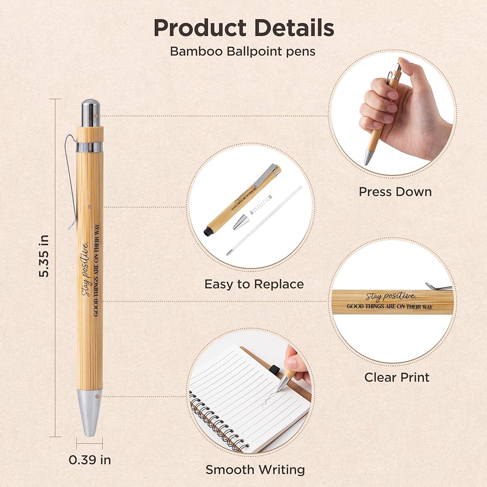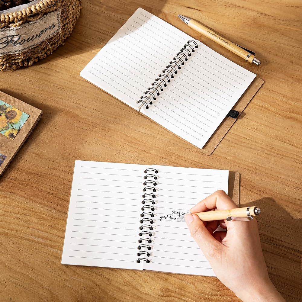 تفاصيل التصميم: يتيح الربط الحلزوني للكمبيوتر المحمول أن يتكشف كل صفحة بشكل مسطح وسلاسة لسهولة الكتابة والتقليب. يحمل شريط المطاط قلم نقطة الكرة في مكانه ، مما يجعل من غير المرجح أن تضيع. يوفر قلم الخيزران قبضة مريحة. مثالي للسفر أو العمل أو الدراسة!