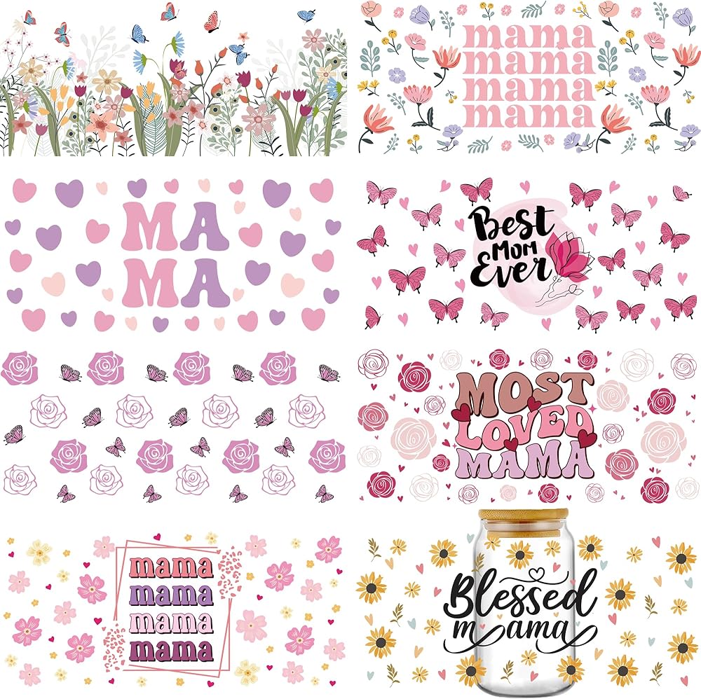 - مجموعة متنوعة من التصميمات: تتضمن 8 صفائح من الكأس الساحرة للهدية من ماما ماما.