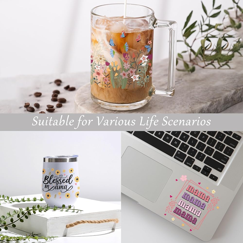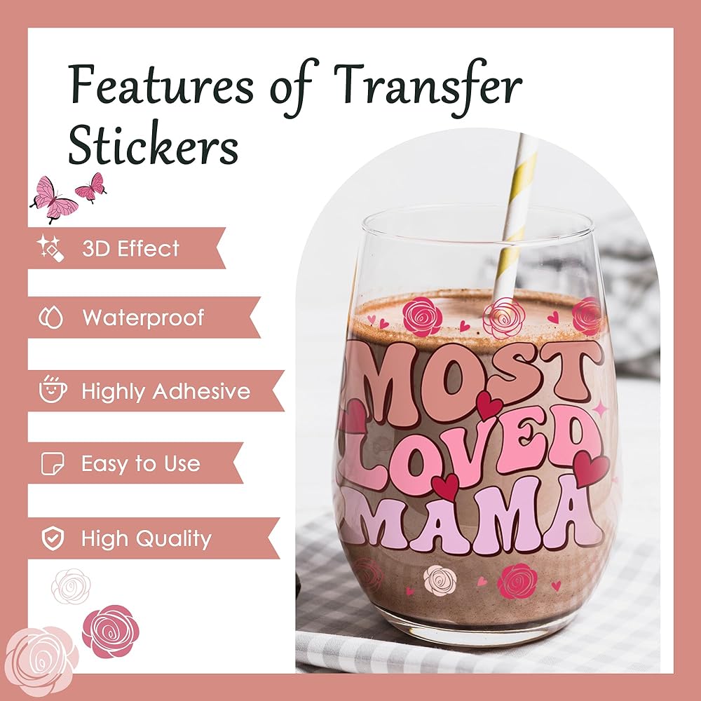 Afritee UV DTF Cup Wraps - 8 أوراق هدية عيد ميلاد ماما الوردي ، فرك فراشة زهرة لطيف على الأشعة فوق البنفسجية DTF 16 20 أوقية زجاجات قهوة زجاجية لأفضل أمي على الإطلاق عيد ميلاد إبداعي هدايا
