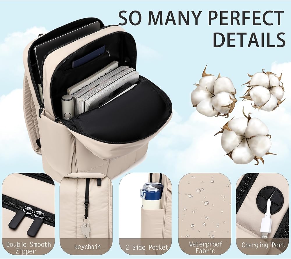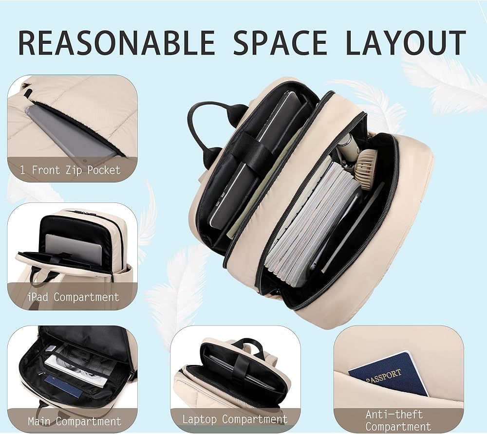 سعة كبيرة: تتوافق مقصورة الكمبيوتر المحمول المنفصل مع كمبيوتر محمول 15.6 '. المقصورة الرئيسية الكبيرة فسيحة للضروريات اليومية ، مثل مجلدات A4 والمجلات والأجهزة اللوحية والشواحن وبنك الطاقة والملابس ، وهناك سلسلة مفاتيح في الجيب الأمامي
