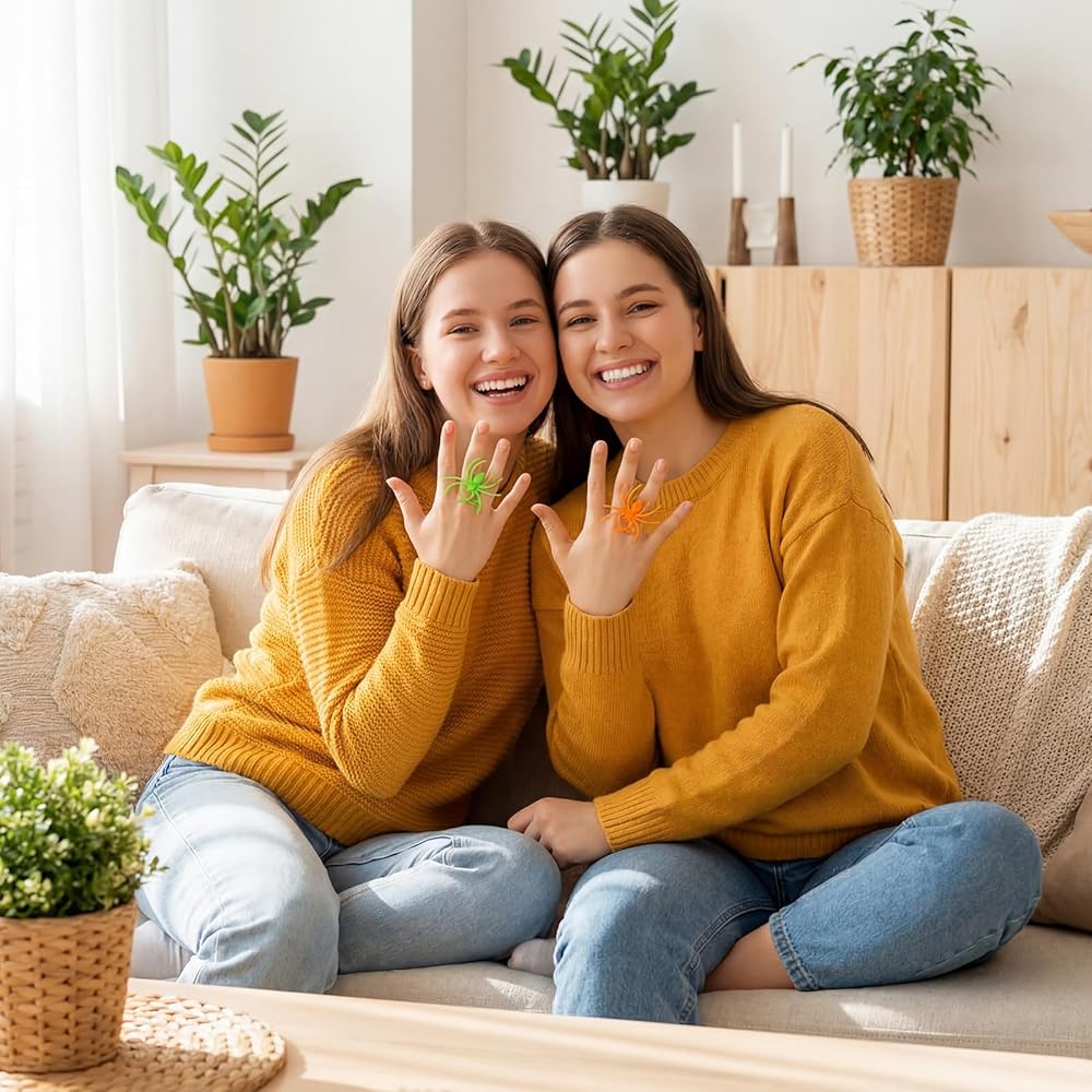120 قطعة حلقات عنكبوت حلقات هالوين حلقات البلاستيك العنكبوت كب كيك أعلى ملحقات أزياء الأزياء هالوين الحفلات